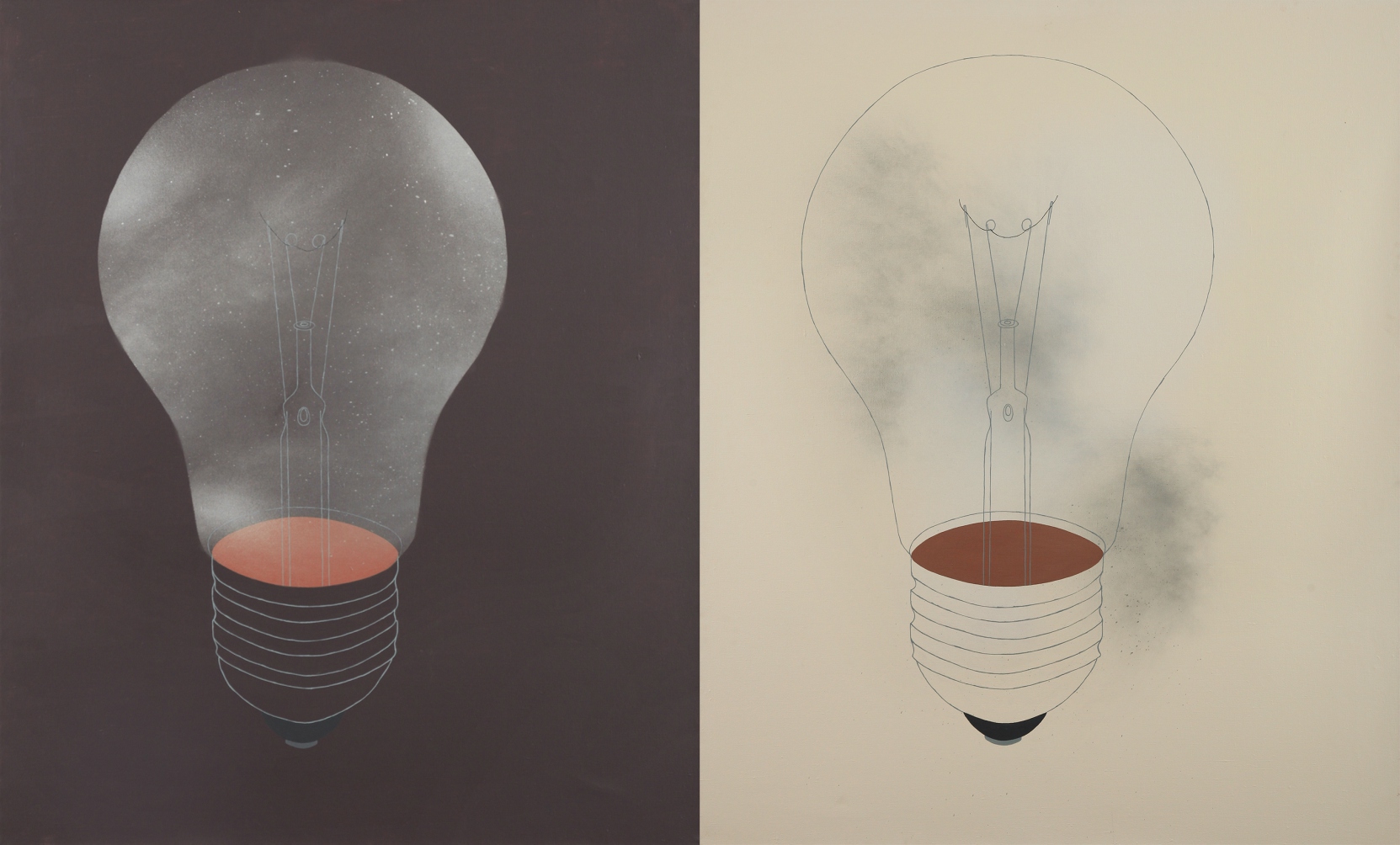 Serija slik tematizira pojem električne žarnice kot enega izmed fenomenov človeškega tehnološkega razvoja. Razstava odpira vprašanje o relaciji in sobivanju med prezentirano vizualno podobo na eni strani in uporabno tehnično vrednostjo konkretnega predmeta na drugi. Gre za daljšo horizontalno postavitev slik na katerih se zgodi ponovitev istega predmeta v različnih tonskih in barvnih prostorih. Minimalna oblikotvorna odstopanja govorijo o čisti, jasni in skoraj perfekcionistični vizualni zavezanosti konkretnemu. Vsebinsko pa Ana Sluga gradira v polje evalviranja in izpraševanja o sodobnem svetu, njegovih večplastnih aporijah in predvsem o vlogi človeka v tehnološko in tehnično hitro razvijajoči se civilizaciji. Podoba žarnice je s tem tudi predstavnica telesa, človeka, bivanja, kompozicija le-teh pa nekakšen pogovor, ples ali komunikacija med njimi.