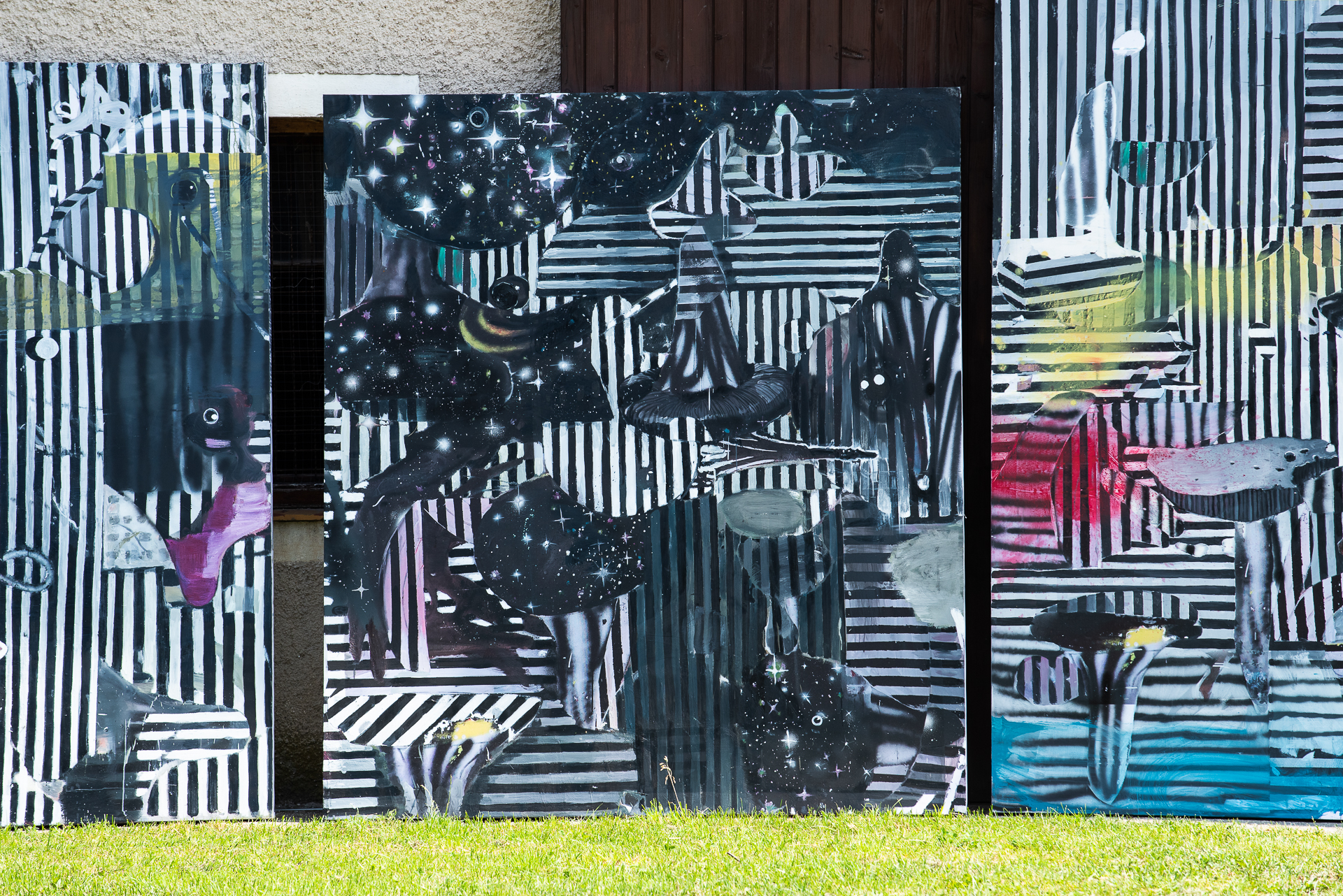 Avtor raziskuje meje in sobivanje različnih svetov, ravni bivanja in različnih pristopov – načinov slikanja. Pomemben del tega je dialektika med nastajanjem – materializacijo in izginjanjem – dematerializacijo predmeta ali prizora in ne toliko njegova končna statična uprizoritev. Slika je zanj proces, sobivanje in preplet abstraktnega in figurativnega. Ficko tudi v novi slikarski produkciji nadaljuje s kolažnim sestavljanjem motivov, likov in znakov v brezčasne in brezprostorne podobe, ki jih konstruirajo ploskve grafičnih rastrov. Avtorjeva kontinuiteta slikarske prakse pa se nakazuje tudi v obravnavi motivov gobic in ptic, toda tokrat v še bolj reducirani barvni in pripovedni paleti.