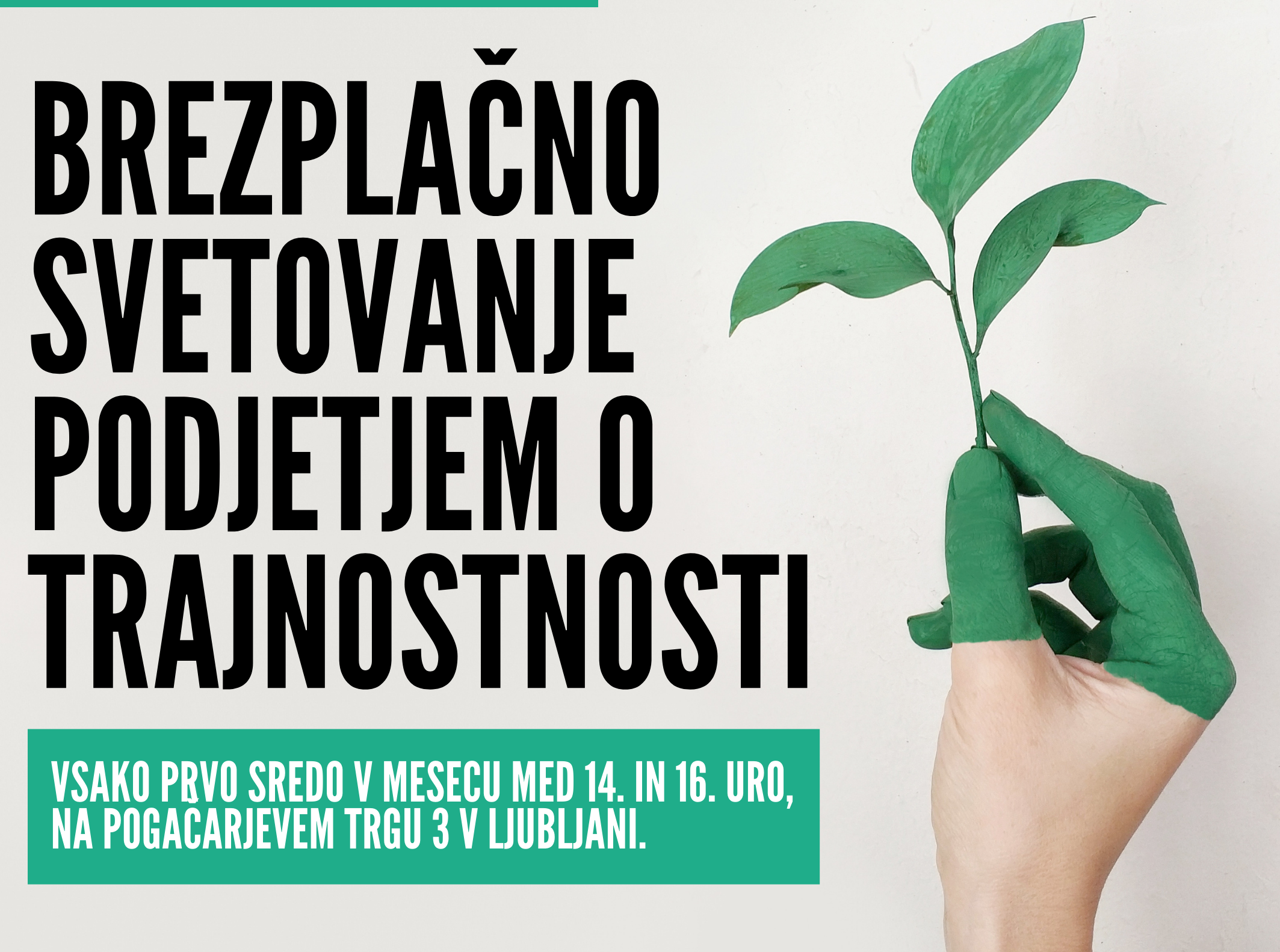 Potem vas vabimo, da izkoristite brezplačno svetovanje na temo trajnostnosti, ki vsako prvo sredo v mesecu poteka v Info točki Misija 100.