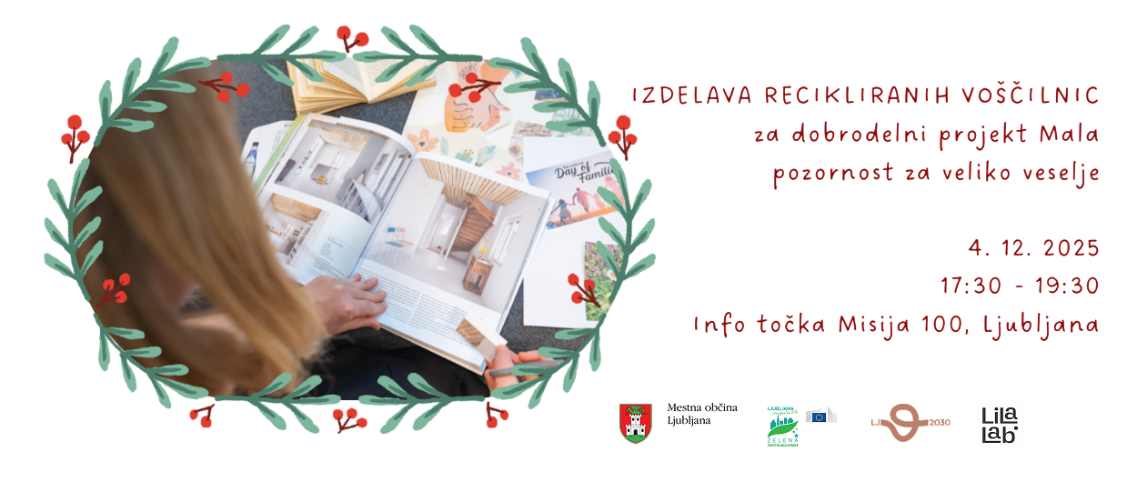 V četrtek, 4. decembra, ob 17:30 vas vabimo v Info točko Misija 100 (Pogačarjev trg 3, Ljubljana) na delavnico izdelave prazničnih voščilnic.