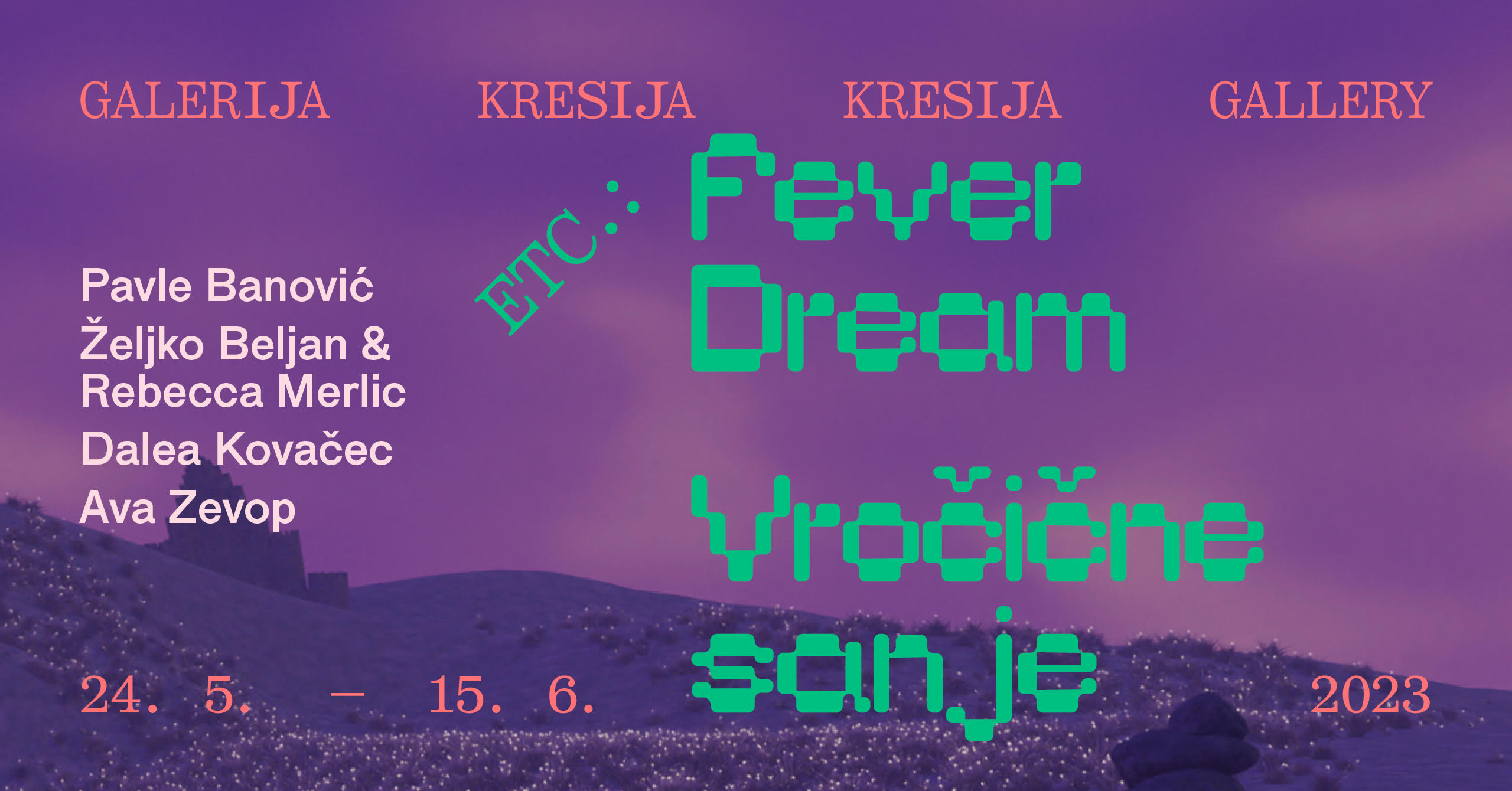 Razstava Vročične sanje predstavlja umetniške projekte, predstavljene v drugi številke revije ETC., ki stopajo po meji med resničnim in neresničnim, sanjskim in otipljivim svetom, se sprašujejo o moči ter omejitvah umetne inteligence in poskušajo zamajati zanesljivost človeškega spomina. Pavle Banović, Dalea Kovačec, Rebeca Merlic in Željko Beljan ter Ava Zevop z uporabo različnih pristopov v virtualni ter fizični javni prostor umeščajo arhive sanj ter proizvajajo umetno ustvarjene podobe in lažne spomine, s tem pa kažejo na kompleksnost našega časa in moč umetnosti, da se z njim sooča.