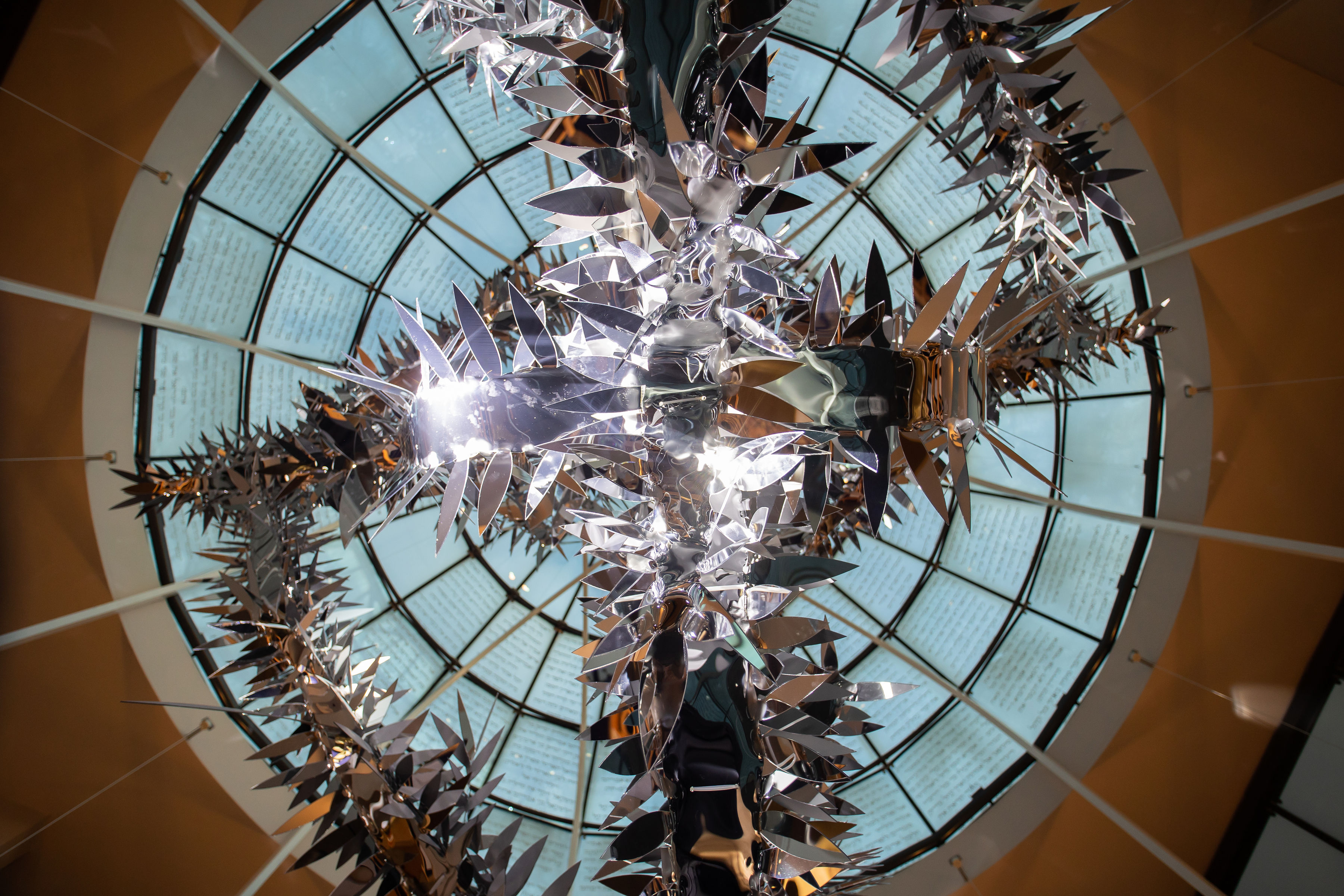 Instalacija je nastala z uporabo tehnike krivljenja zrcalnega akrilnega stekla z vročim zrakom. Akrilno steklo, material, ki ga doživljamo kot hladnega in trdega, lasersko razrezan v organske oblike in ročno oblikovan s toplotno pištolo ter obsijan z lučmi, tako dobi povsem novo obliko, zaznavo in pomen. Zmanipulirana plastika postane navidezno krhka, subtilno odbijanje svetlobe od stekla ustvarja posebno, čarobno okolje in vzdušje.