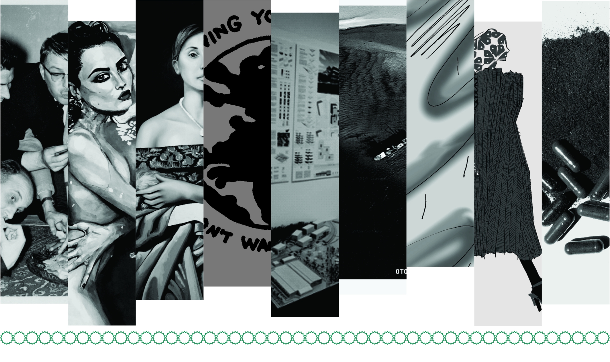 Predstavljena so dela s področij modnega in grafičnega oblikovanja, fotografije, ilustracije, različnih zvrsti slikarstva in instalacije. Avtorji snov za svoja dela najdejo v opazovanju današnje družbe, v aktualnem dogajanju, okolici, ki jih obdaja, in v odnosu človeka do lastnega okolja. Druge navdihujejo zgodbe in zgodovina, nekaterim pa največji navdih predstavlja neposlikano platno z možnostmi, ki jih ponuja. Razstava išče vzporednice predvsem v pristopu avtorjev k obravnavi tem, ki se jih v svojih delih dotikajo, postavitev pa hkrati poudarja kontrast med njimi. Nekatera izmed razstavljenih del se konkretno ukvarjajo s pogledom bodisi v pomenu fizične dejavnosti organa vida v vlogi vršilca dejanja, torej kot objektivnega pogleda na obravnavano snov, bodisi v smislu subjektivnega pogleda kot odnosa do nekaterih problemov ali situacij. Pri nastanku drugih je ključno vlogo igral avtorjev poglobljen vpogled vase kot vir navdiha in način razumevanja sebe in sveta. Razstavljena dela, ki so na razstavi podvržena našemu pogledu, nam tako ponujajo vpogled v umetniško prakso razstavljavcev, pa tudi priložnost za ponoven premislek o našem pogledu na svet.