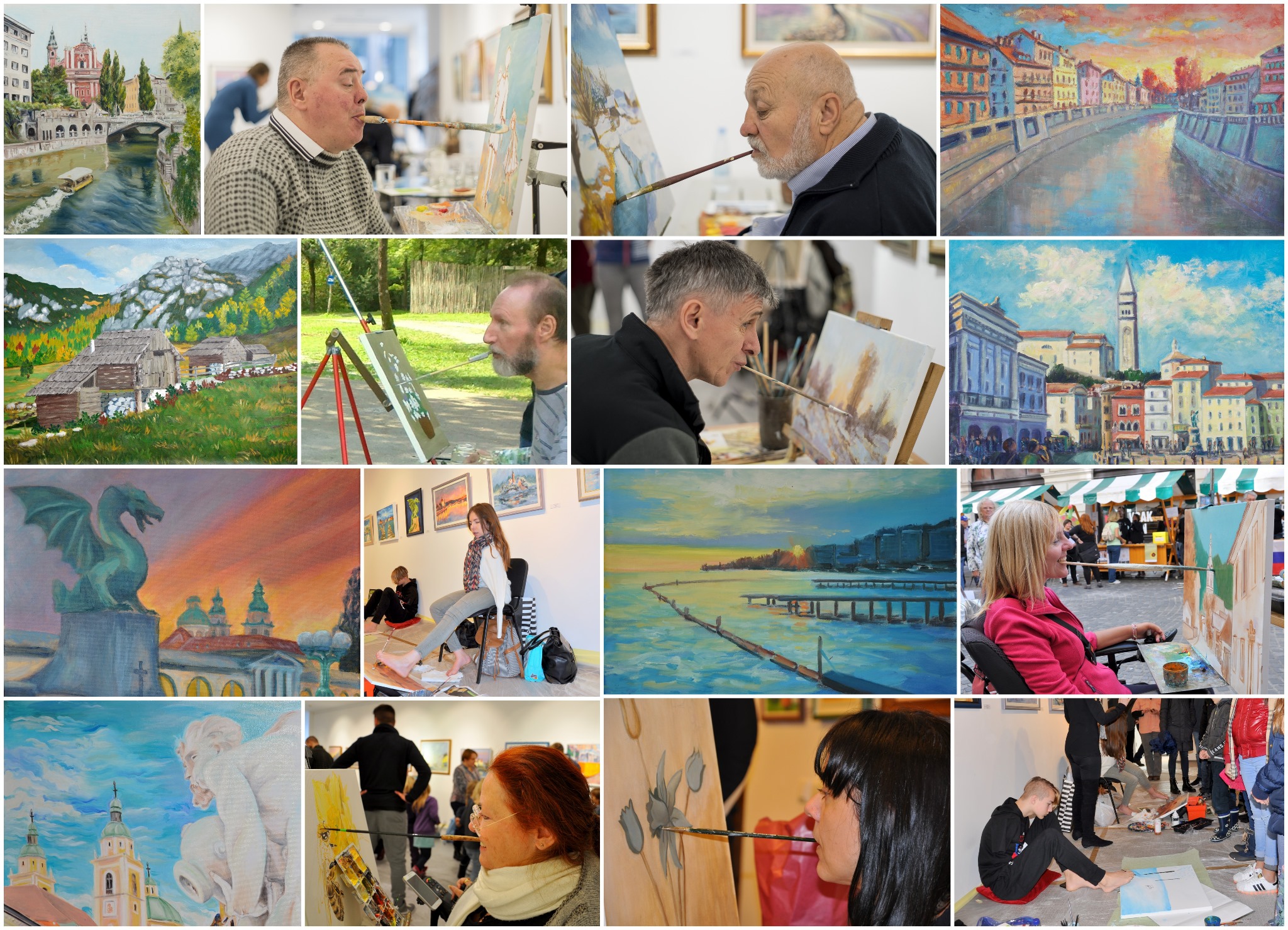Razstavo slikarjev, ki slikajo z usti ali nogami, organizira Založba UNSU, ki v Sloveniji zastopa interese in naloge Mednarodnega združenja slikarjev, ki slikajo z usti ali nogami, katerega člani lahko postanejo samo umetniki, ki zaradi nesreče, poškodb ali prirojenih napak ne morejo uporabljati rok in zato slikajo tako, da držijo čopič v ustih ali z nogami. Mednarodno združenje letos praznuje 61 let obstoja in šteje več kot 800 slikarjev invalidov iz celega sveta. Z organiziranjem razstav in likovnih delavnic želijo javnosti čim bolj približati delo in ustvarjanje umetnikov, ki slikajo na nekoliko drugačen način.