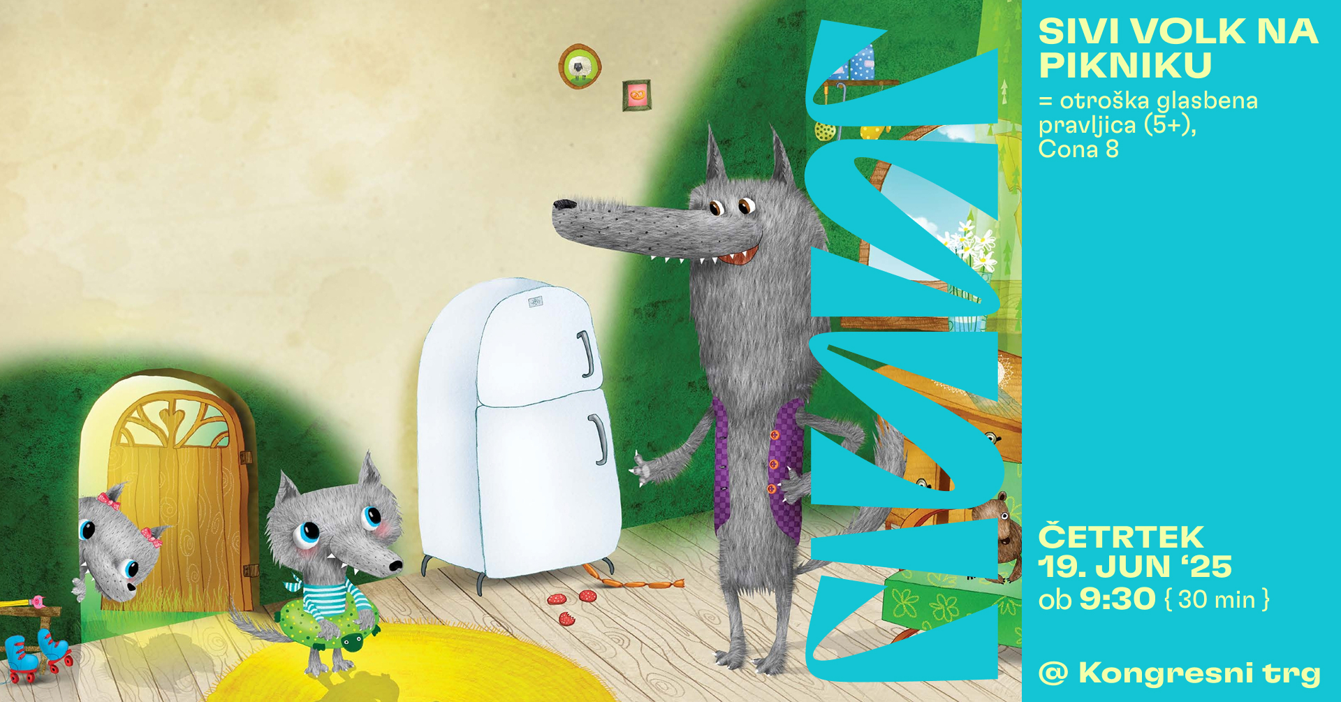 Sivi volk na pikniku je uspešna slikanica priznane slovenske pisateljice otroških knjig Helene Kraljič. Slikanica razpihne vnaprejšnje sodbe in odpre oko za sleherno bitje v njegovi edinstvenosti. Klavir in saksofon, ki mehko dopolnita glas, zarišeta ravno prav dramatično vzdušje, kajti volk si obupano prizadeva poiskati prijatelja. Ga nemara najde med mladim občinstvom?