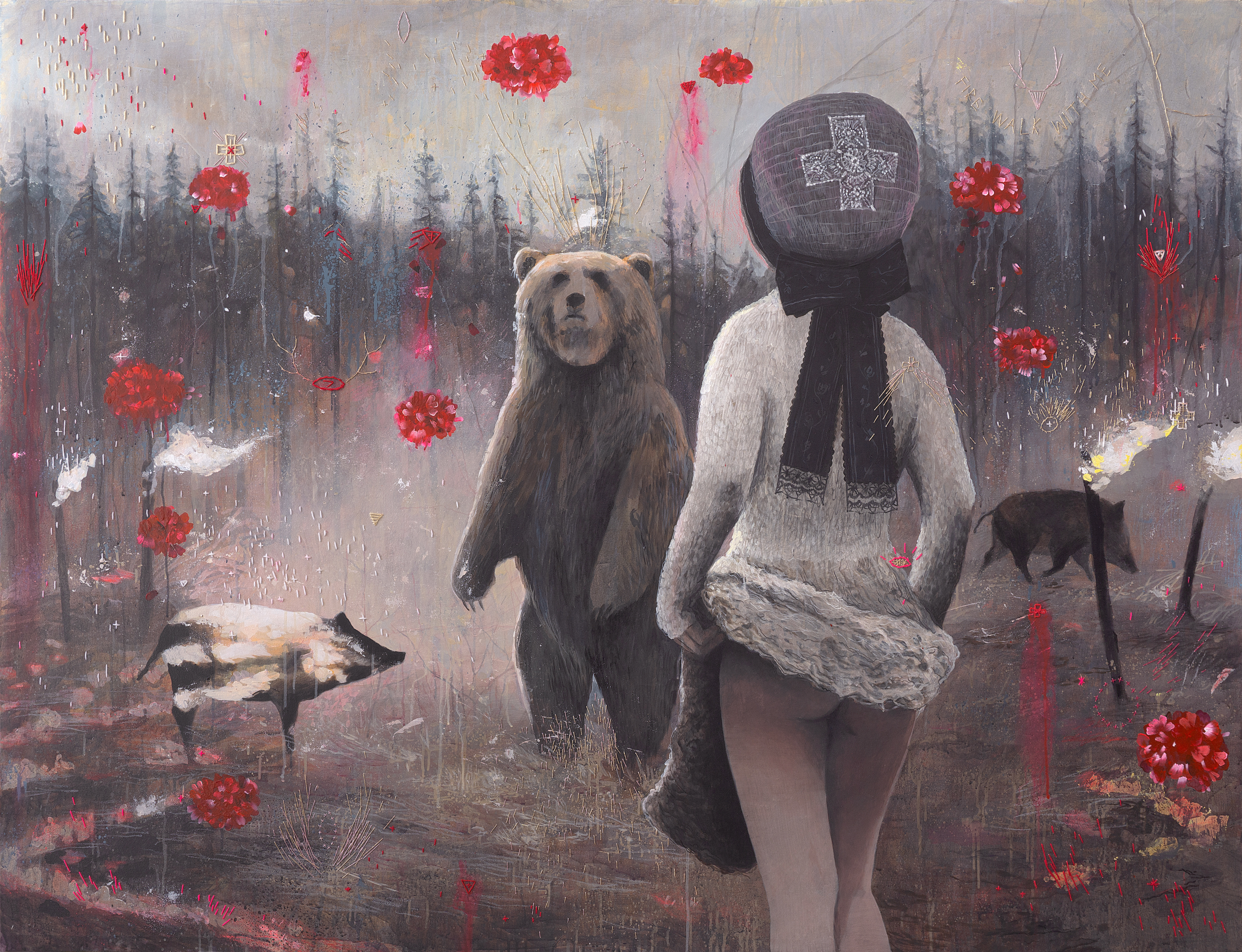 Umetnica Tina Dobrajc, predstavnica mlajše generacije sodobnih likovnih umetnikov, v svojem delu združuje tradicionalno, folklorno s sodobnim in aktualnim. Umetnica na slikarski način raziskuje koncepta identitete in družbenega etiketiranja – z združevanjem na videz nezdružljivih podob sodobnosti in motivov tradicije ustvarja nove kontekste in odpira nova gledišča tako na sodobnost kot na preteklost.