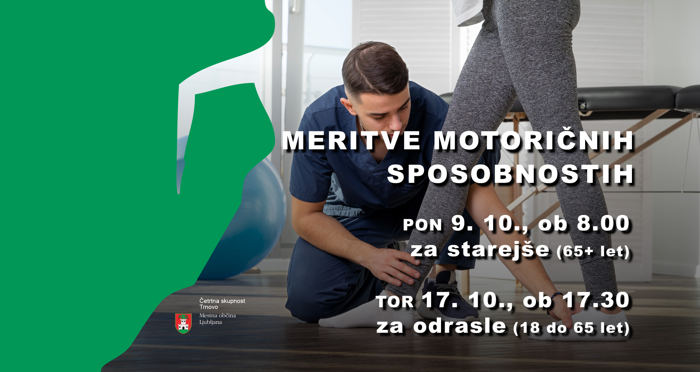 Četrtna skupnost Trnovo vabi na brezplačne meritve motoričnih sposobnosti za odrasle in starejše, ki jih bodo izvajali v ŠD trnovo.