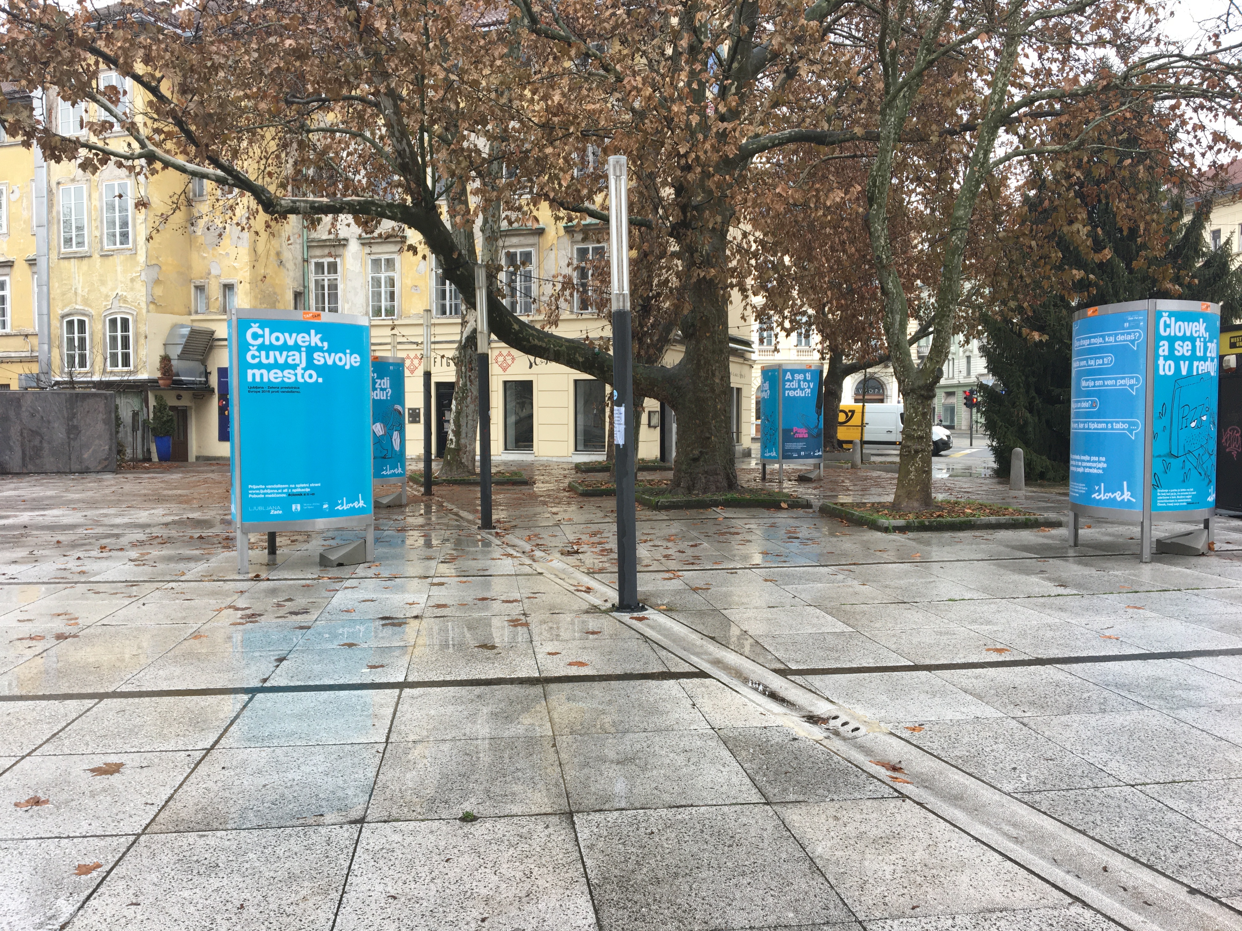 V galeriji na prostem na ploščadi pred Slovensko hišo (Figovec) razstavljamo plakate družbeno odgovorne kampanje Človek, čuvaj svoje mesto, s katero že od leta 2015 opozarjamo na spoštovanje našega skupnega prostora.