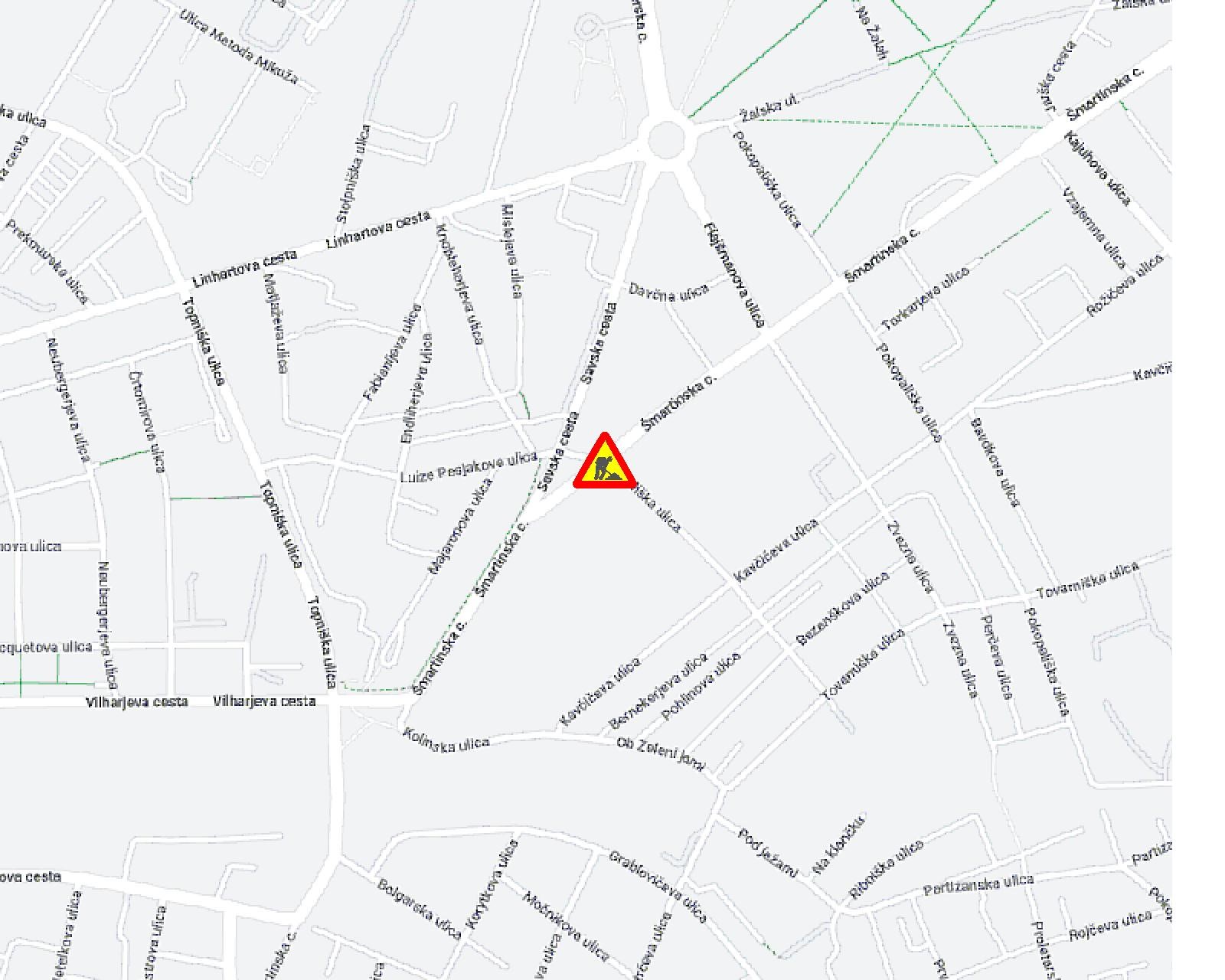 Zaradi interventne sanacije kanalizacije bo od torka, 16. avgusta 2022, do predvidoma nedelje, 21. avgusta 2022, delna zapora Šmartinske ceste v križišču z Središko ulico.
