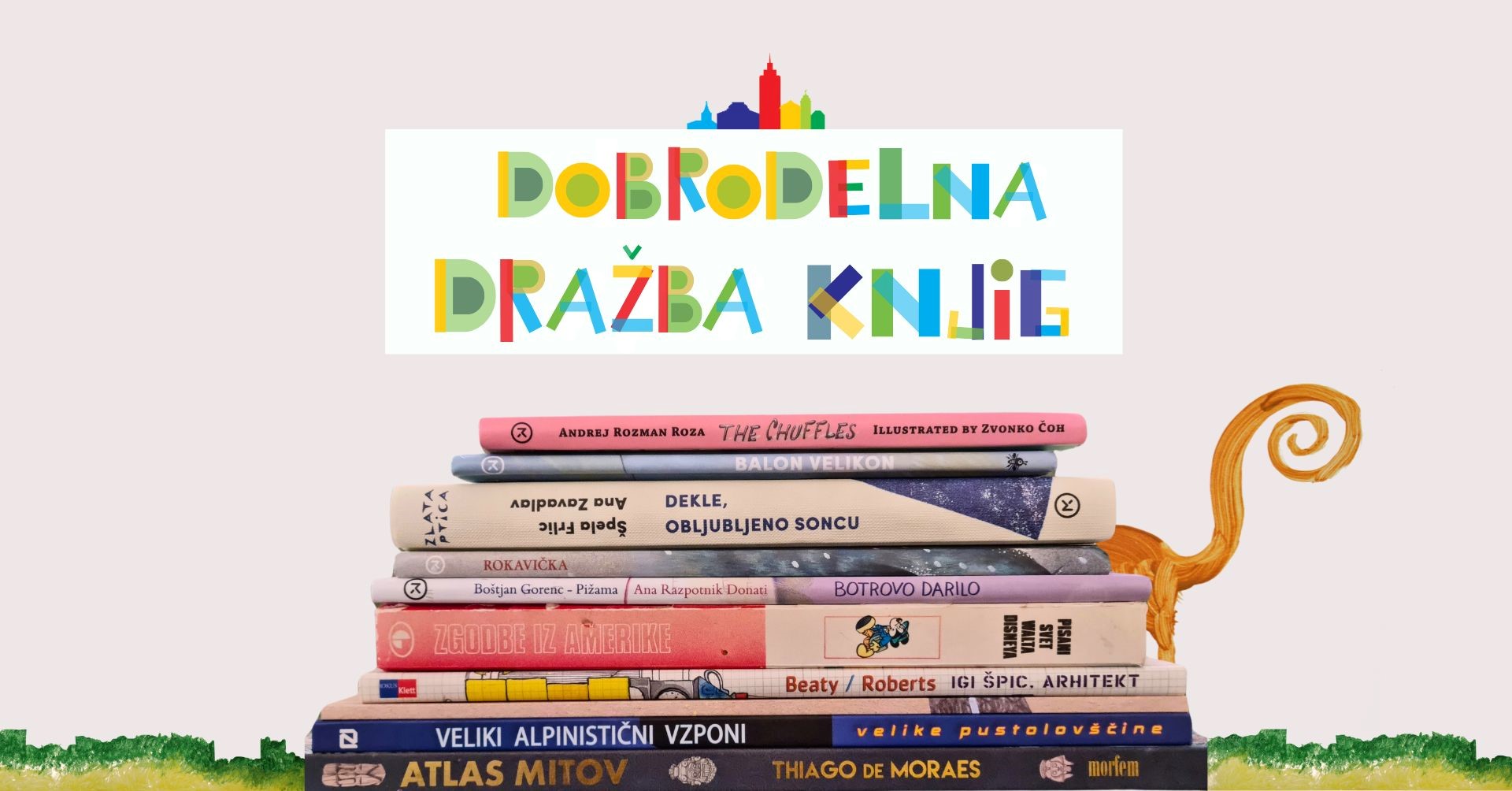 Na dražbi bodo otroške knjige avtorjev kot so Anja Štefan in Jelka Reichmen, Boris A. Novak, Desa Muck, Feri Lainšček, Špela Frlic in Tadej Golob ter znanih osebnosti kot so Bojan Cvjetićanin, Nik Škrlec, Peter Prevc, Tomi Meglič, Viki Grošelj, Vlado Kreslin, Zoran Predin...