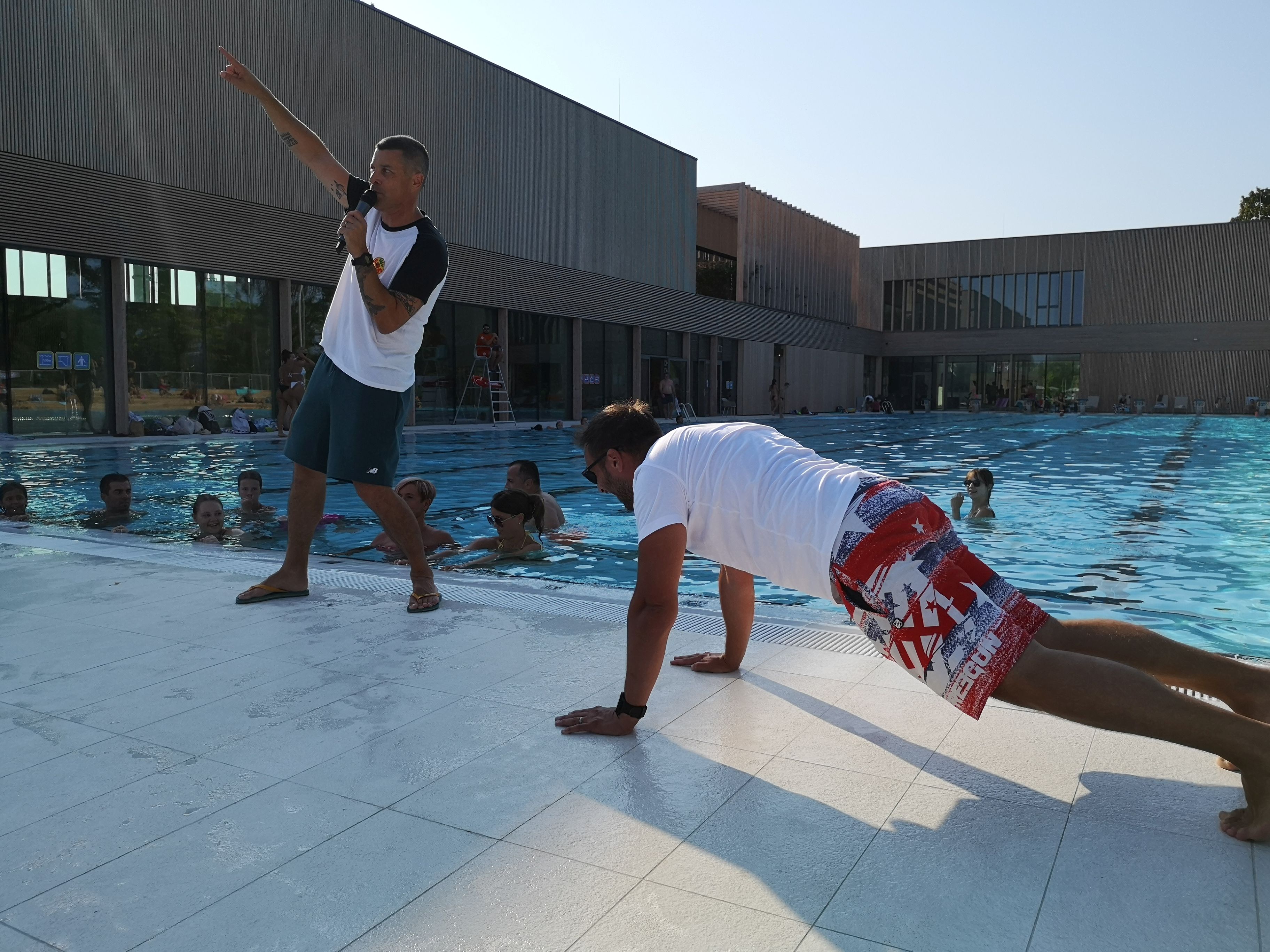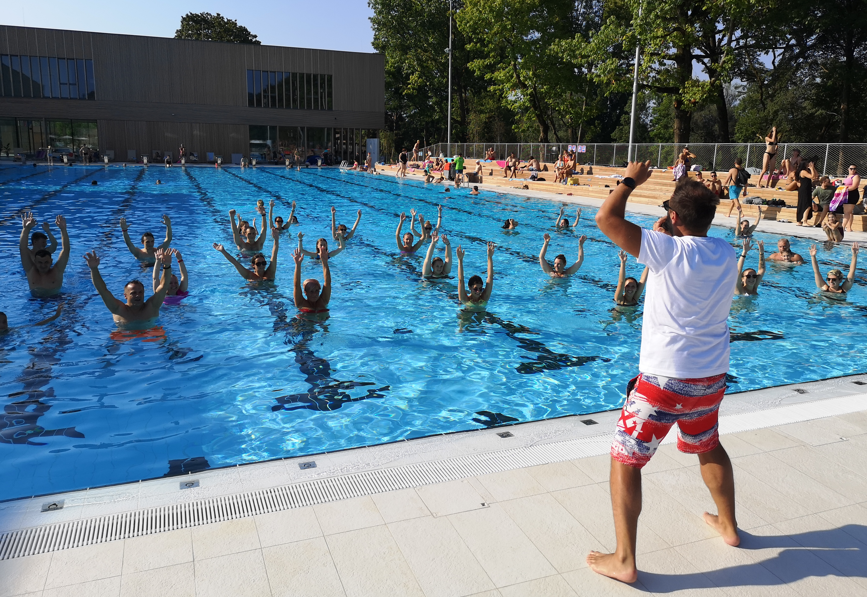 Na bazenu so lahko plavalci tokrat preizkusili vodno aerobiko, ki je bila posebnost dogodka. Sinhrono razgibavanje ob pestri glasbi je zunanji bazen kopališča Vevče spremenilo v plesišče in telovadnico. Vodja vodne aerobike Luka Brulc je med odmorom poudaril: "Pravi pristop je, da šport pride k ljudem. Da razširijo pogled in vidijo, kaj vse je še na voljo okoli njih." Kljub utrujenosti je bil njegov nasmeh dober pokazatelj zadovoljstva. "Ko se ljudje odmaknejo od ekranov, vidijo tisti resnični svet, iz katerega so ekrani zgrajeni. In če jih bomo znali poslušati, jim bomo lahko pomagali pri tem," je še dodal.