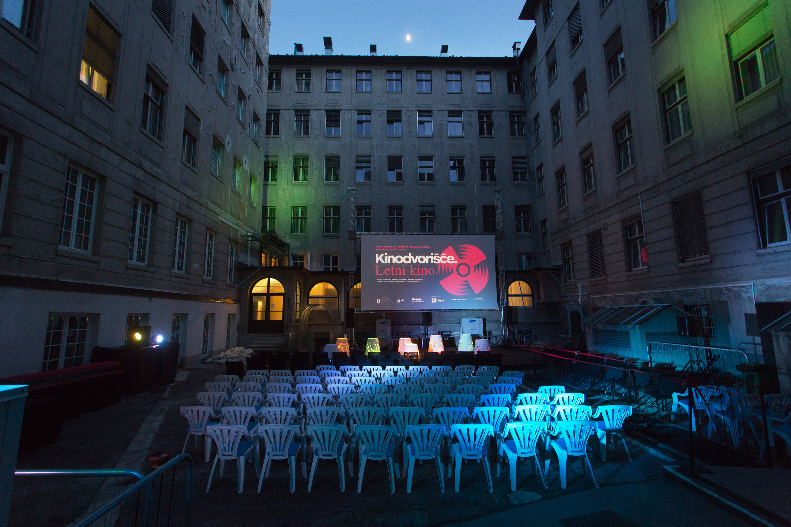 Kinodvor filmske projekcije tudi letos seli pod zvezdno nebo. Ob lepih zgodnjepoletnih večerih bodo večerne projekcije preselili na Kinodvorišče, v sosednji atrij Slovenskih železnic.
