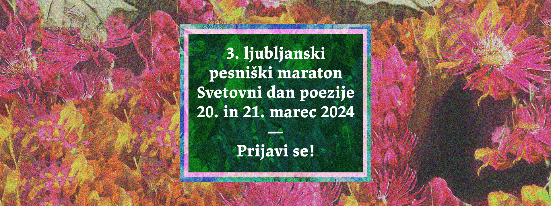 V sredo in četrtek, 20. in 21. marca 2024, bo v Ljubljani potekal tretji Ljubljanski pesniški maraton, na katerem se bo na sedmih lokacijah zvrstilo več kot 70 tistih, ki pišejo, urednikujejo, lektorirajo, prevajajo ali zgolj in predvsem berejo poezijo.