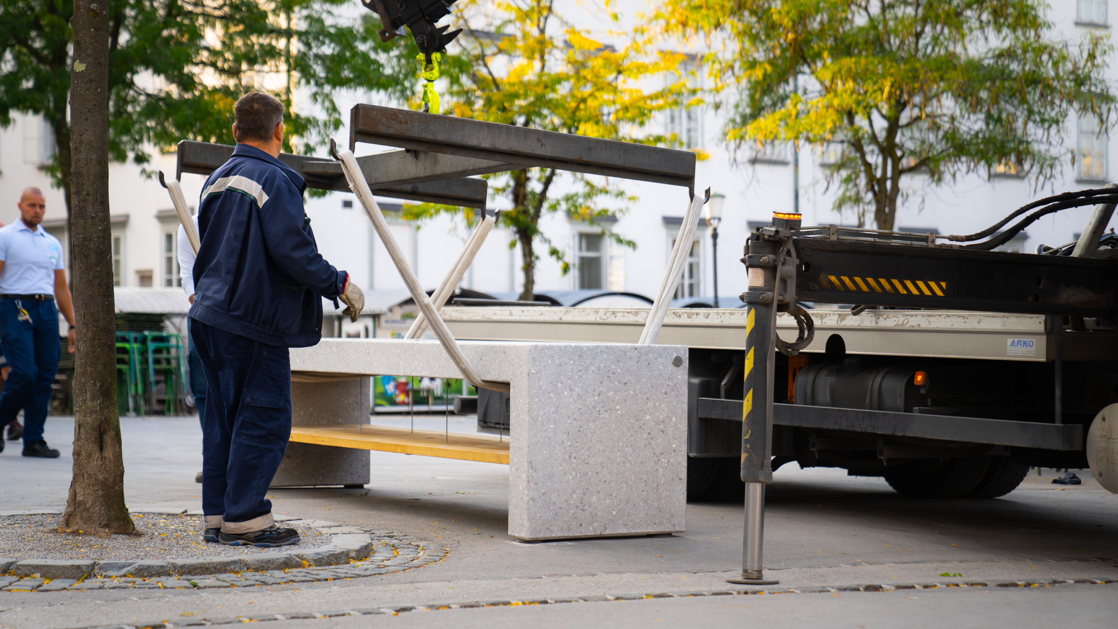 Postavili smo tudi novo betonsko klop, ki bo nadomestila eno izmed obstoječih lesenih prodajnih mest. Poleg še boljšega delovnega okolja za prodajalce bo služila tudi trajnostnemu razvoju in estetskemu pridihu tržnice.