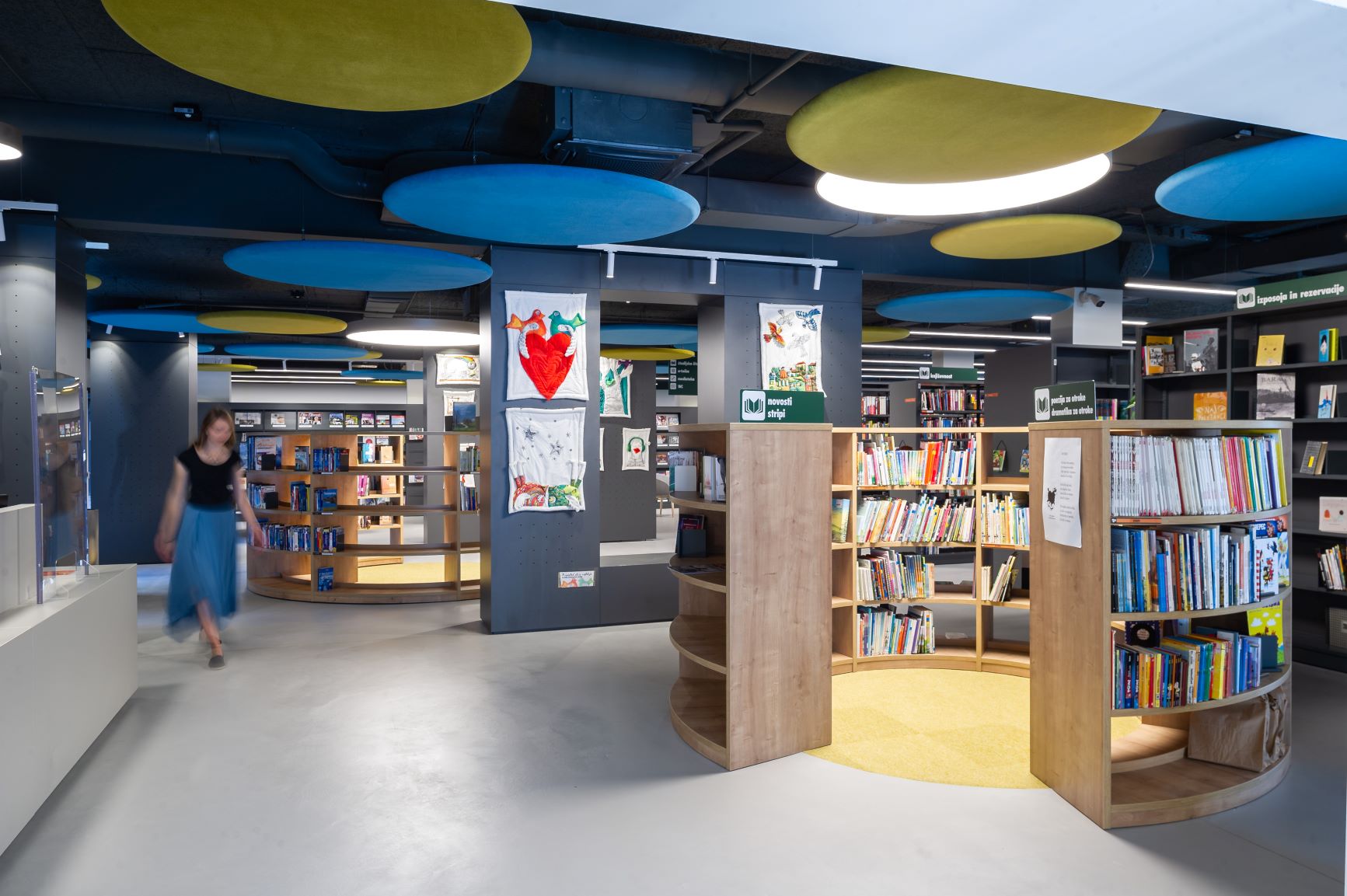 Nova zasnova prostorov knjižnice, ki je umeščena v pritličje stavbe, je dinamična in odprta, zato je lahko dostopna gibalno oviranim prebivalcem ter osebam z vozički.