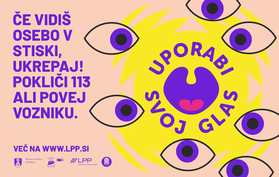 Tudi zaradi nedavnega primera nadlegovanja deklice na mestnem avtobusu smo skupaj z javnim podjetjem LPP in ob podpori Društva za nenasilno komunikacijo zasnovali kampanjo Uporabi svoj glas. Osnovni namen kampanje je spodbuditi ljudi, da pozorno spremljajo dogajanje v svoji okolici ter prepoznajo različne oblike nasilja. Z njo nagovarjamo priče, da zmorejo prepoznati opozorilne znake, da zaupajo svojemu občutku ter pravočasno ukrepajo in s tem pomagajo žrtvi.