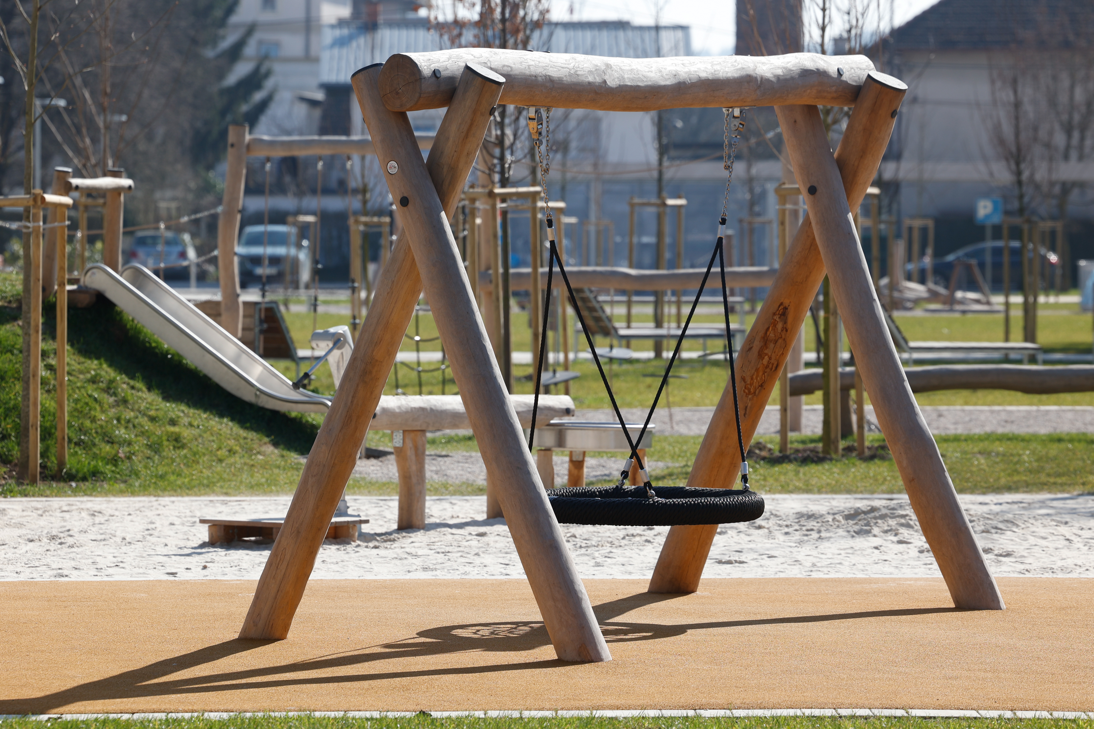 Nova soseska celostno zaključuje stavbni kare, sredi katerega smo uredili tudi javni park, otroško igrišče in rekreacijske površine.