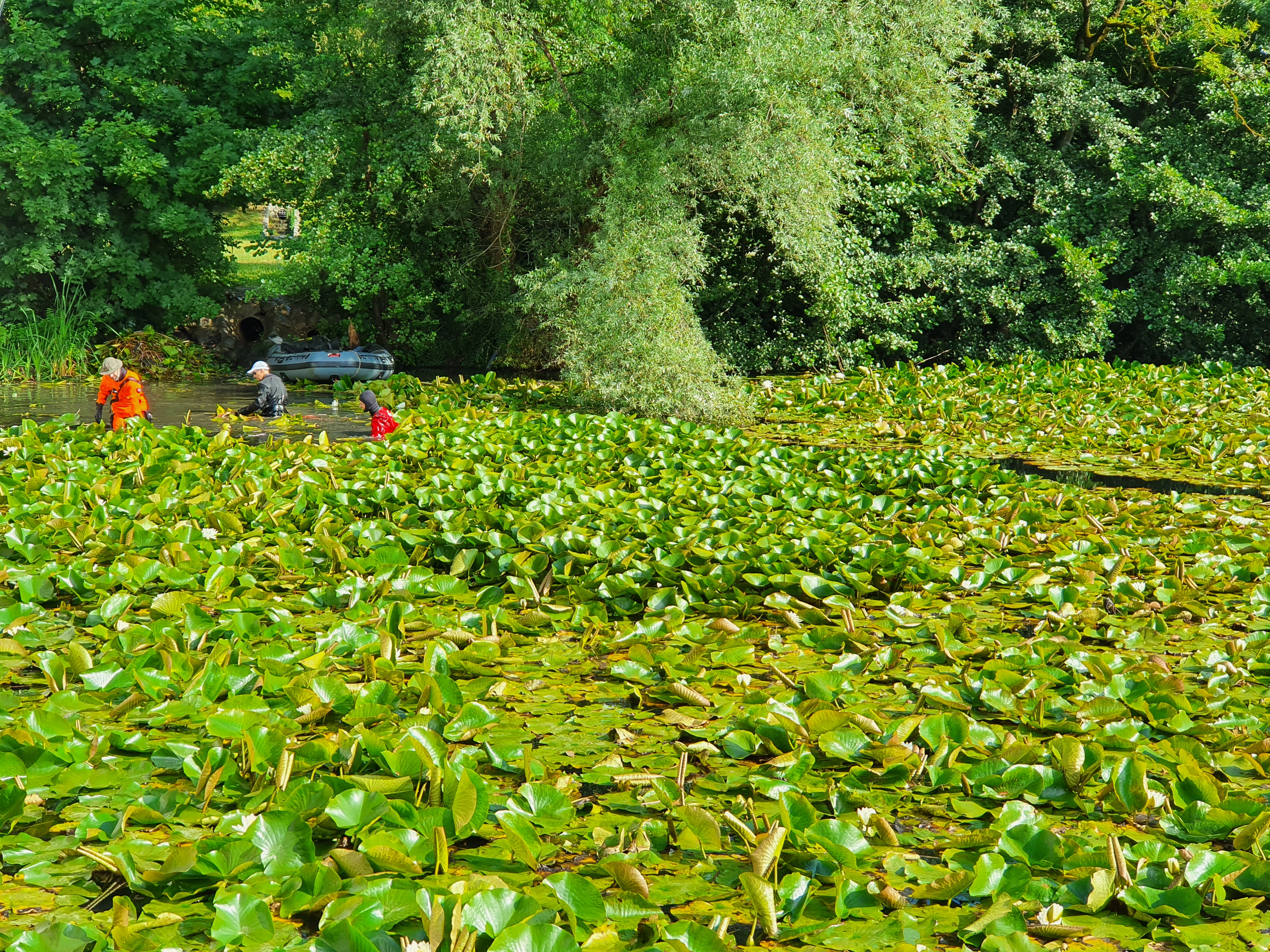 Na ribniku v Tivoliju tudi letos poteka akcija odstranjevanja lokvanjev, ki so se preveč razrasli in skoraj v celoti prekrili vodno površino.