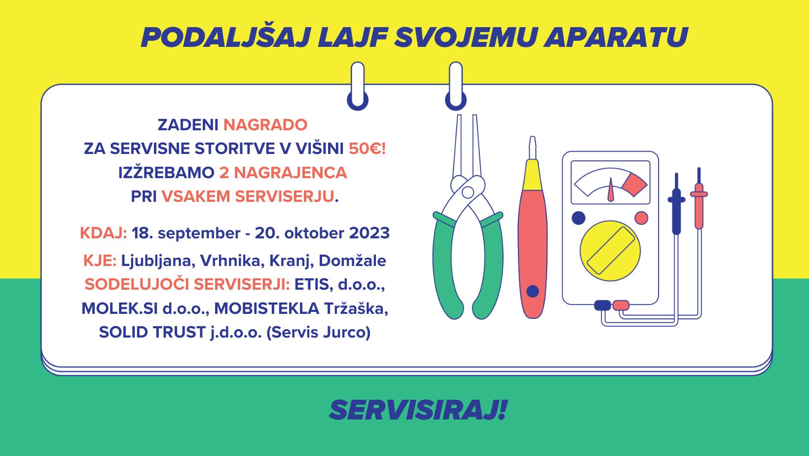 Do 20. oktobra 2023 bo v Ljubljani potekala že peta akcija Podaljšaj lajf svojemu aparatu – servisiraj!, namenjena spodbujanju servisiranja pokvarjenih aparatov pri lokalnih serviserjih.