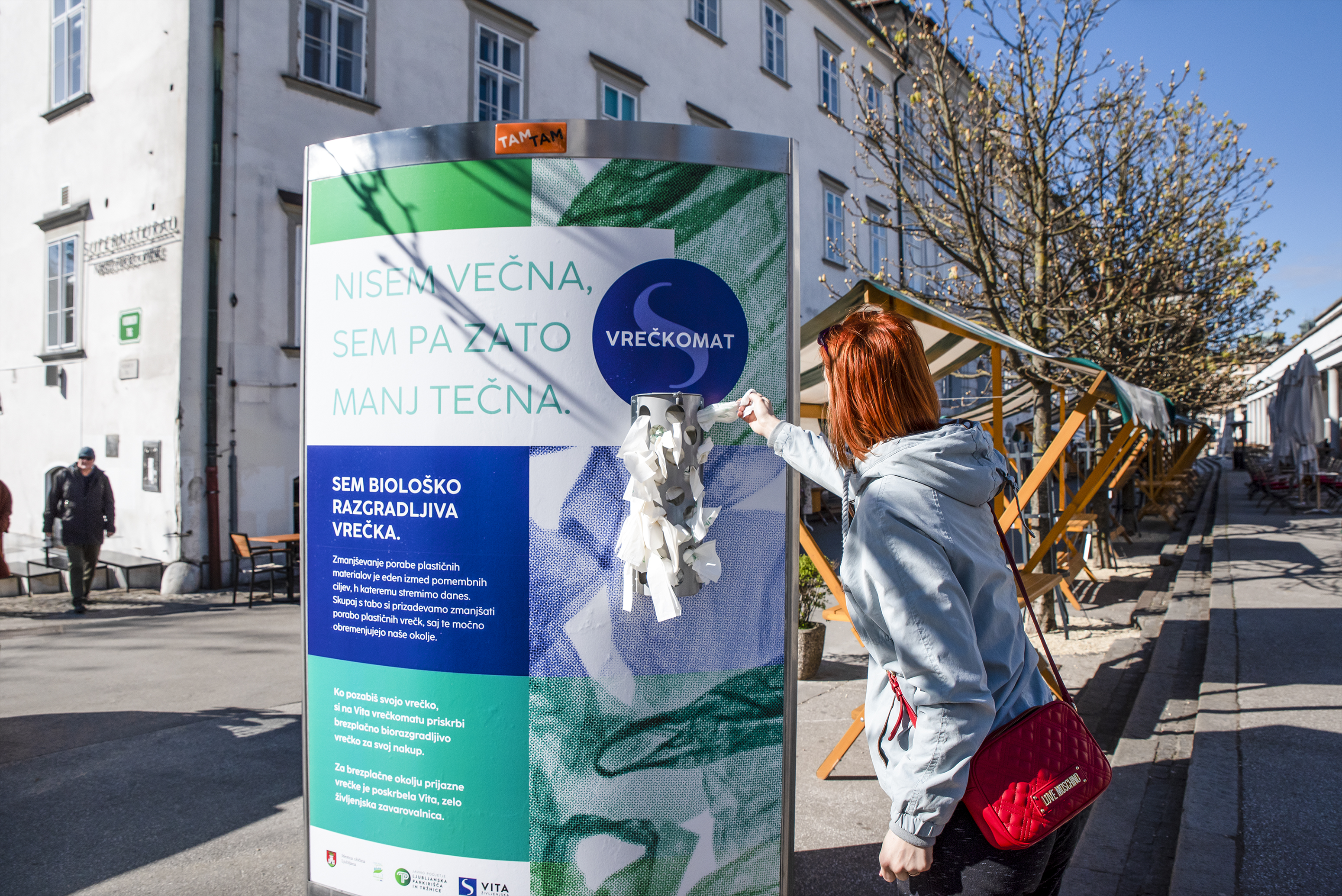 V sklopu akcije Za lepšo Ljubljano predstavljamo Vrečkomat na osrednji ljubljanski tržnici, kjer so brezplačno na voljo biorazgradljive vrečke, ki jih obiskovalci lahko uporabijo namesto plastičnih vrečk.
