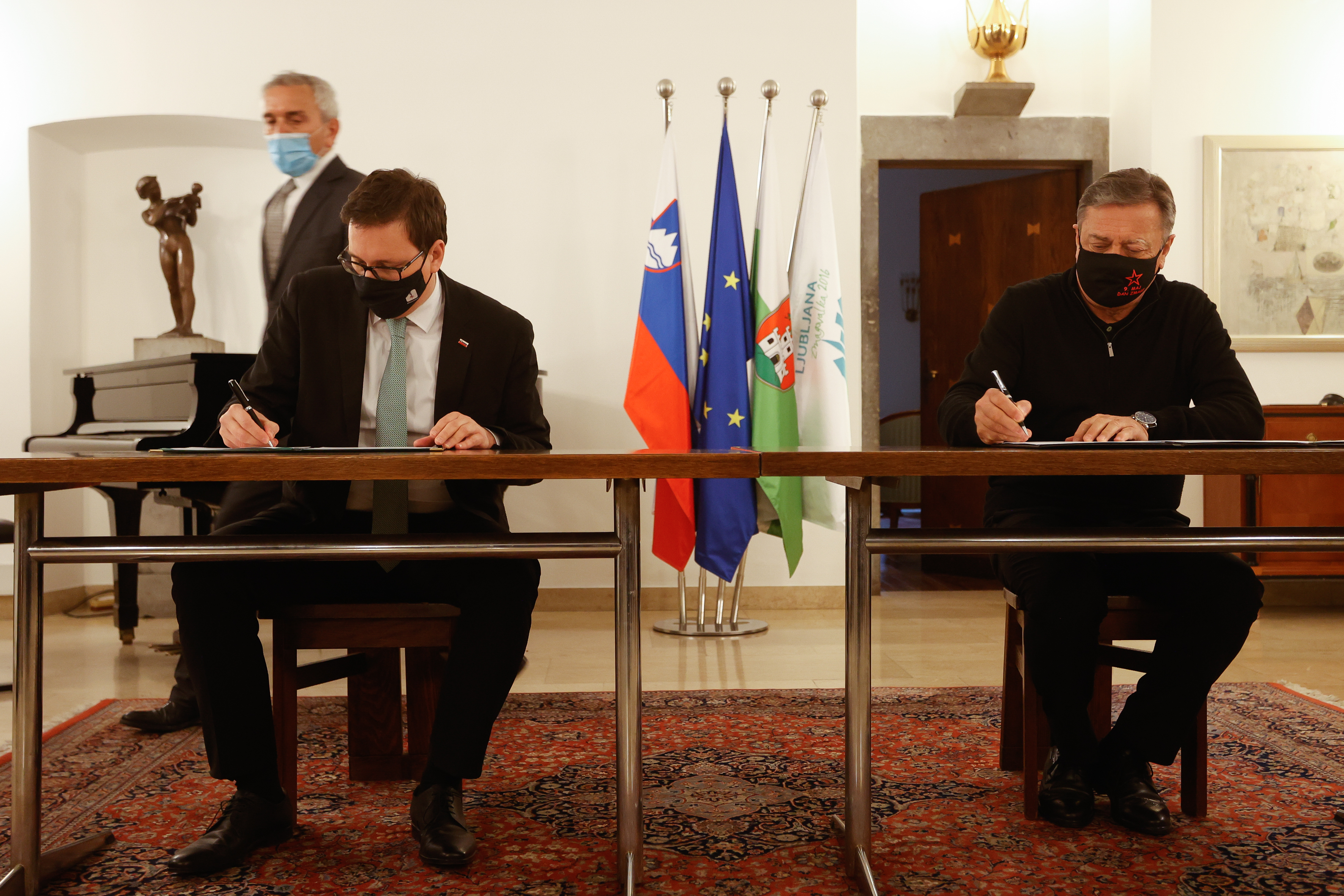 Župan Zoran Janković in minister za javno upravo Boštjan Koritnik sta 6. maja 2021 v Mestni hiši podpisala Dogovor med Vlado RS in Mestno občino Ljubljana o izvajanju programov in nalog po Zakonu o glavnem mestu za obdobje 2020 - 2023.