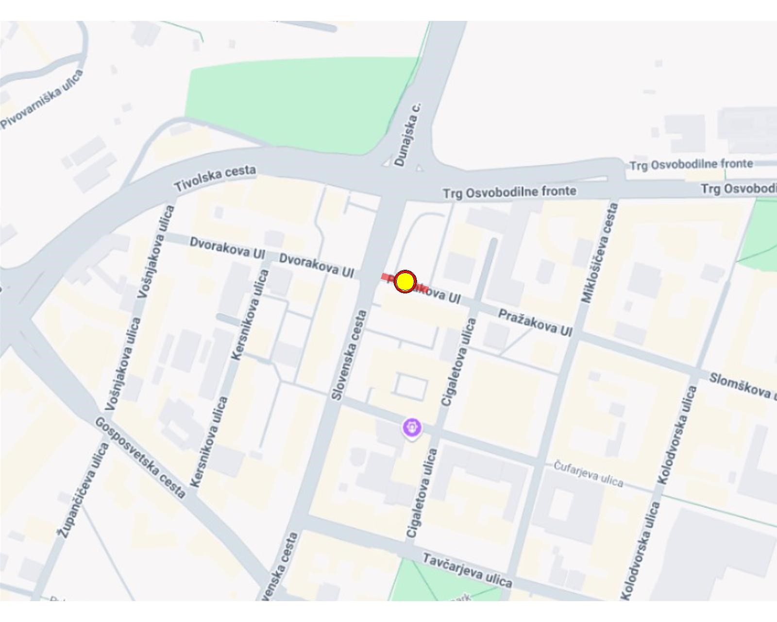 Popolna zapora Pražakove ulice med Slovensko cesto in Cigaletovo ulico