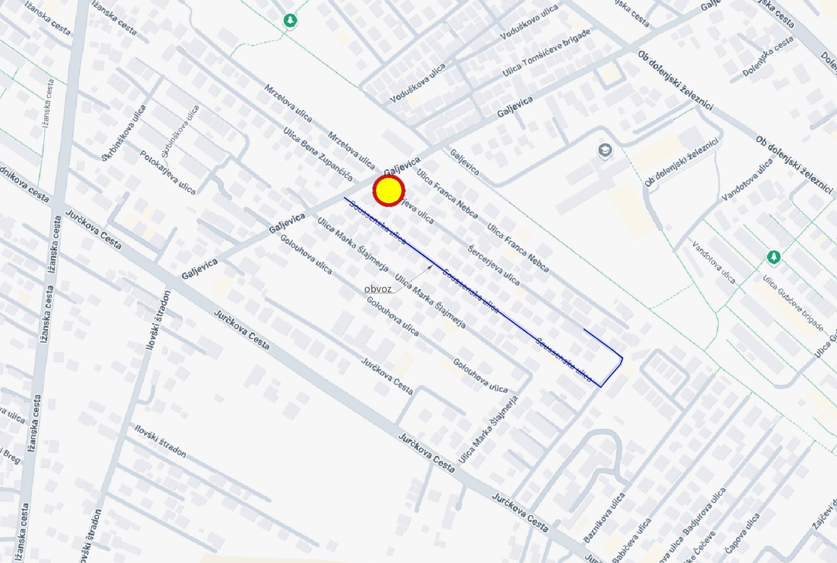 Zaradi izvedbe vodovodnega in kanalizacijskega priključka bo 8. in 9. avgusta 2025 popolna zapora Šercerjeve ulice, pri križišču z Galjevico.