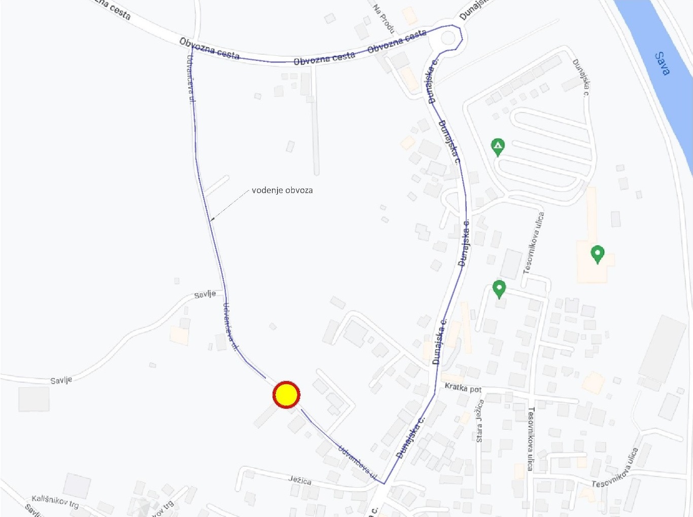 Obvoz bo voden preko Obvozne ceste in Dunajske ceste.