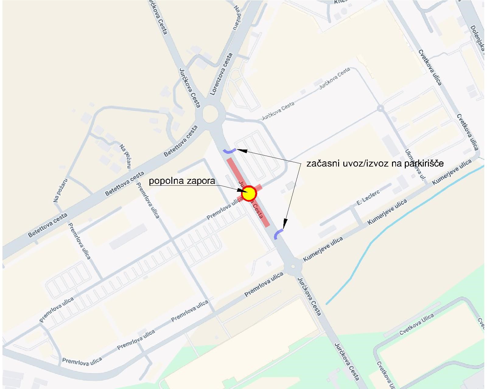 Zaradi izgradnje novega krožišča v nakupovalnem središču Rudnik bo od 6. oktobra do 27. novembra 2025 za ves promet zaprta Jurčkova cesta med krožiščema z Betettovo cesto in Premrlovo ulico.