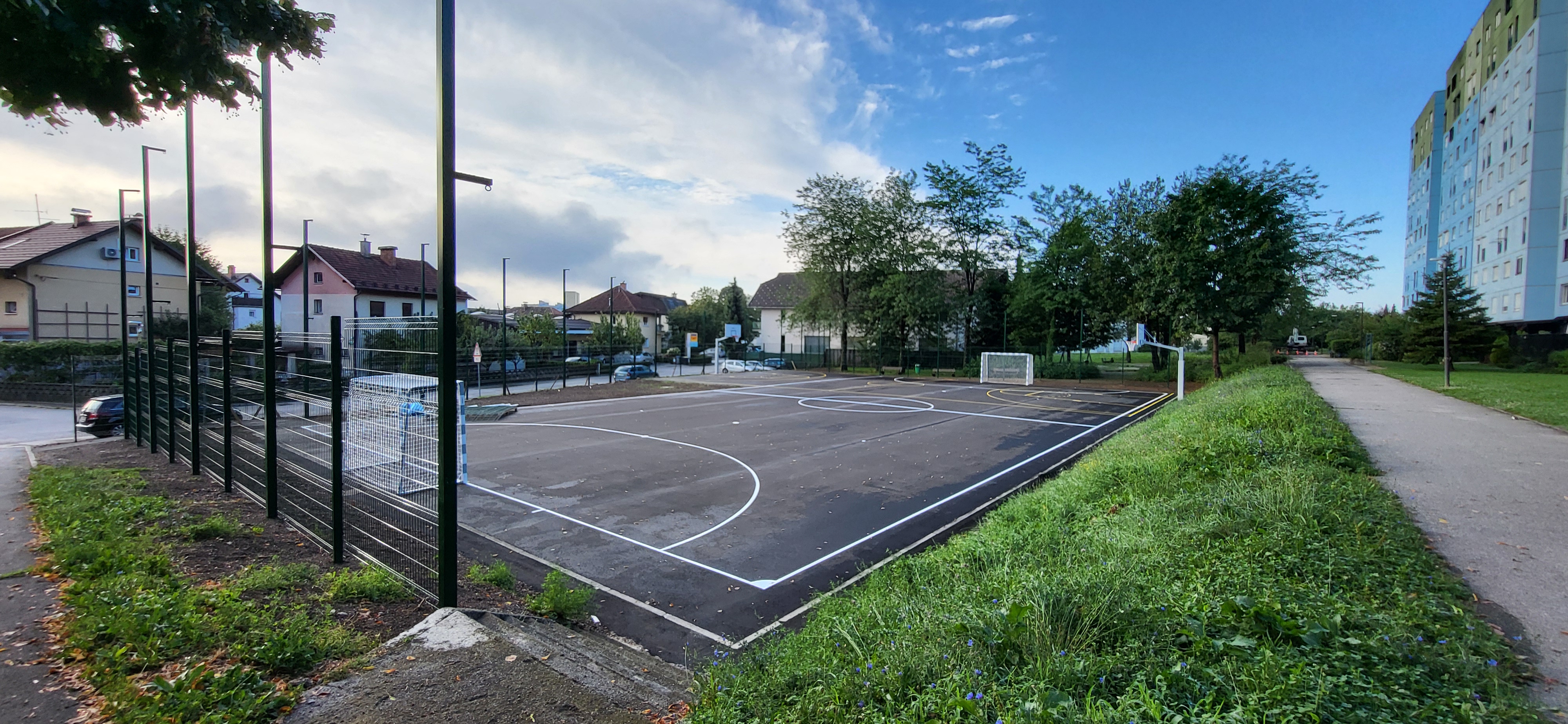Asfaltirano igrišče smo preplastili, zamenjali smo ograjo in lovilne mreže za goli ter namestili nove košarkarske koše in nogometne gole.