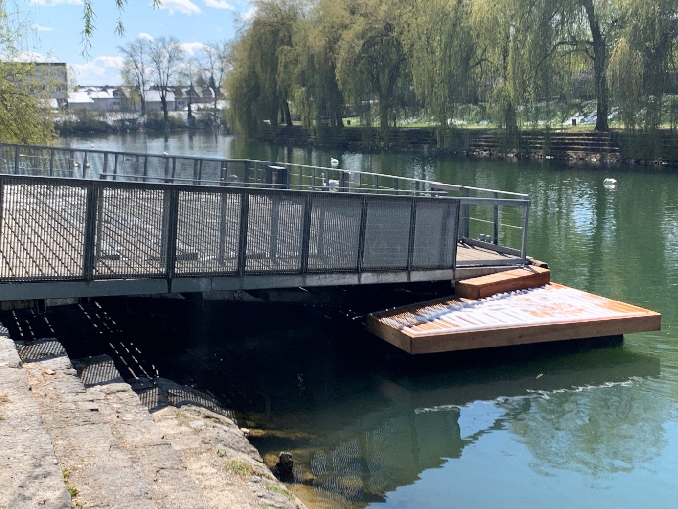 Lesen pomol po načrtih projektanta Jurija Kobeta iz Atelierarhitekti d.o.o. dopolnjuje obstoječe vstopno-izstopno mesto na Ljubljanici, ki ga sicer uporabljajo plovila.