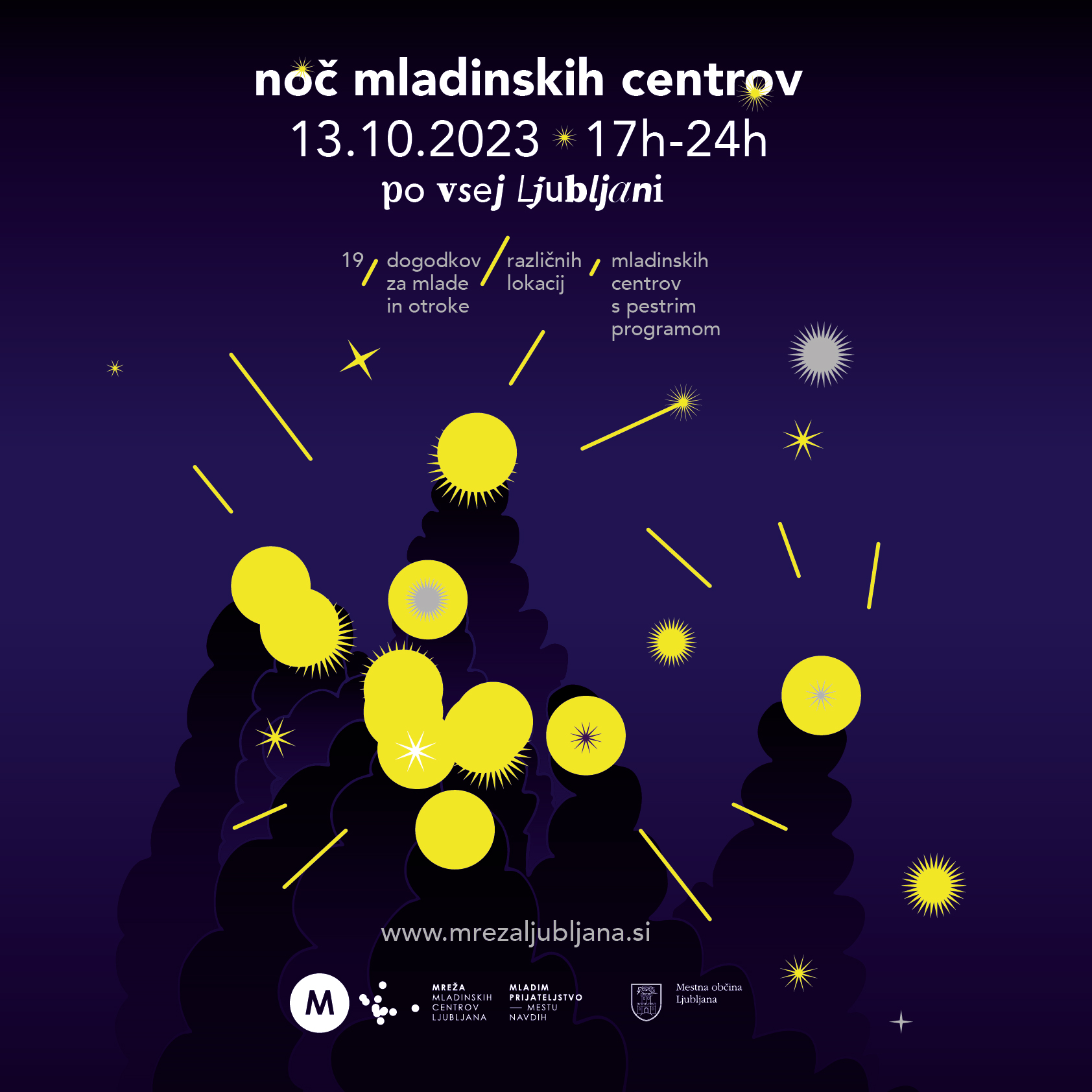 Devetnajst ljubljanskih mladinskih centrov mlade v petek, 13. oktobra, med 17. in 24. uro vabi na zabavno, glasbeno, kuharsko, cirkuško, plesno, filmsko, medkulturno in drugo zanimivo dogajanje.