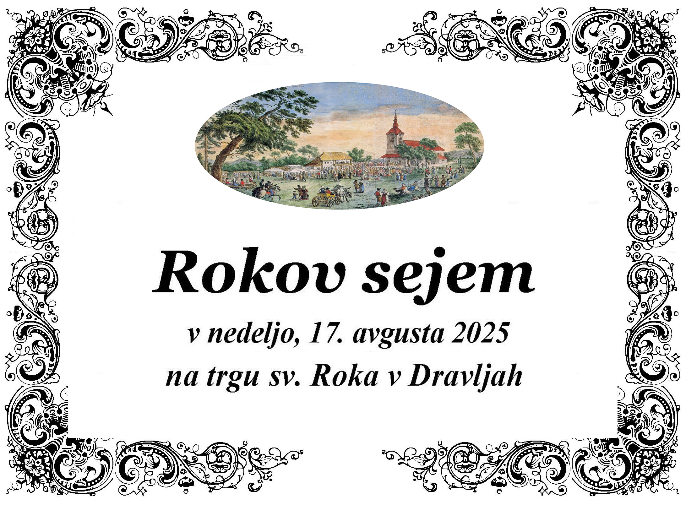 V nedeljo, 17. avgusta 2025, vas vabimo na tradicionalni Rokov sejem, ki ga na trgu sv. Roka v Dravljah pripravljajo Četrtna skupnost Dravlje, Turistično društvo Dravlje in Župnija Dravlje.