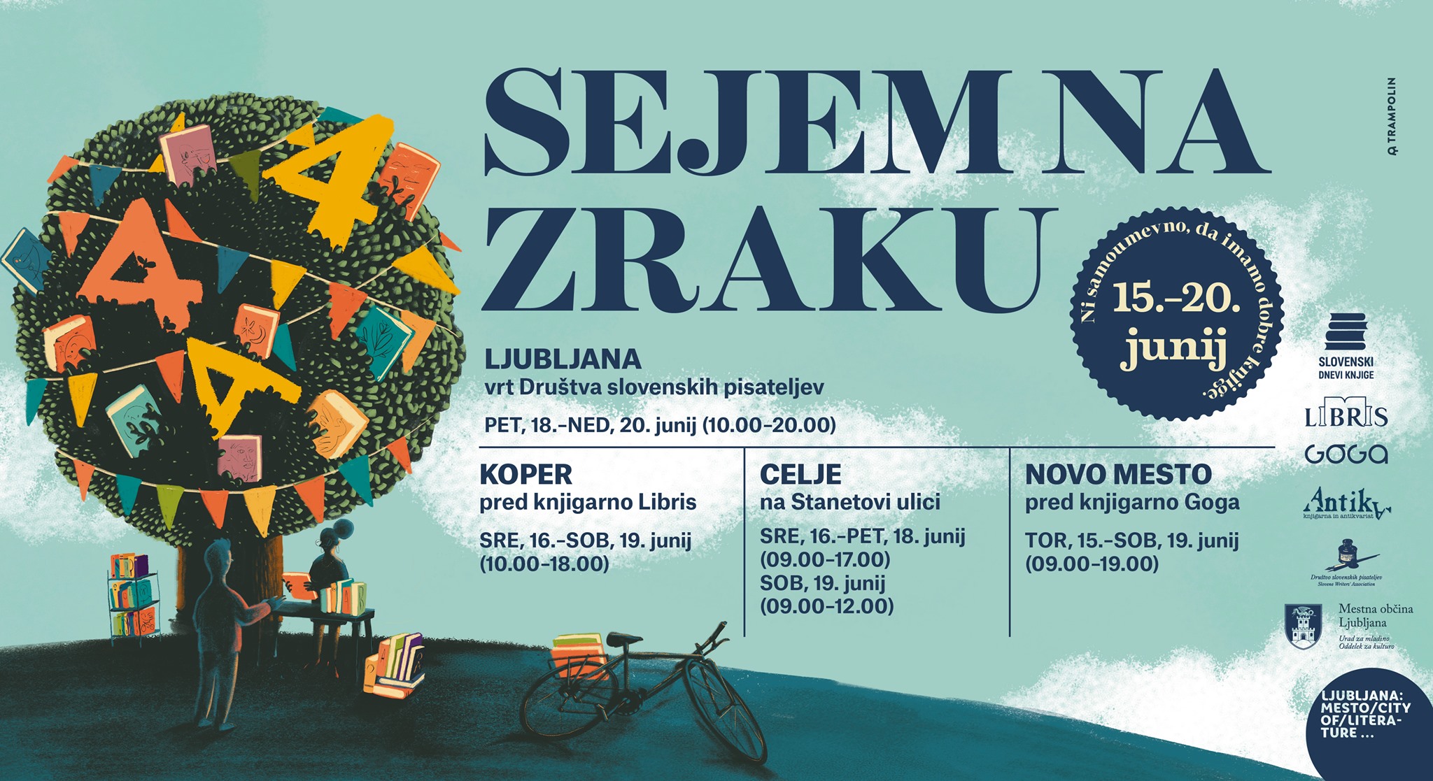 V okviru Slovenskih dnevov knjige se bo od 18. do 20. junija na vrtu Društva slovenskih pisateljev ponovno odvijal Sejem na zraku, kjer bo 50 založnikov in založnic ponujalo najboljše in najbolj sveže knjižne izdaje s sejemskimi popusti in spremljevalnim programom.