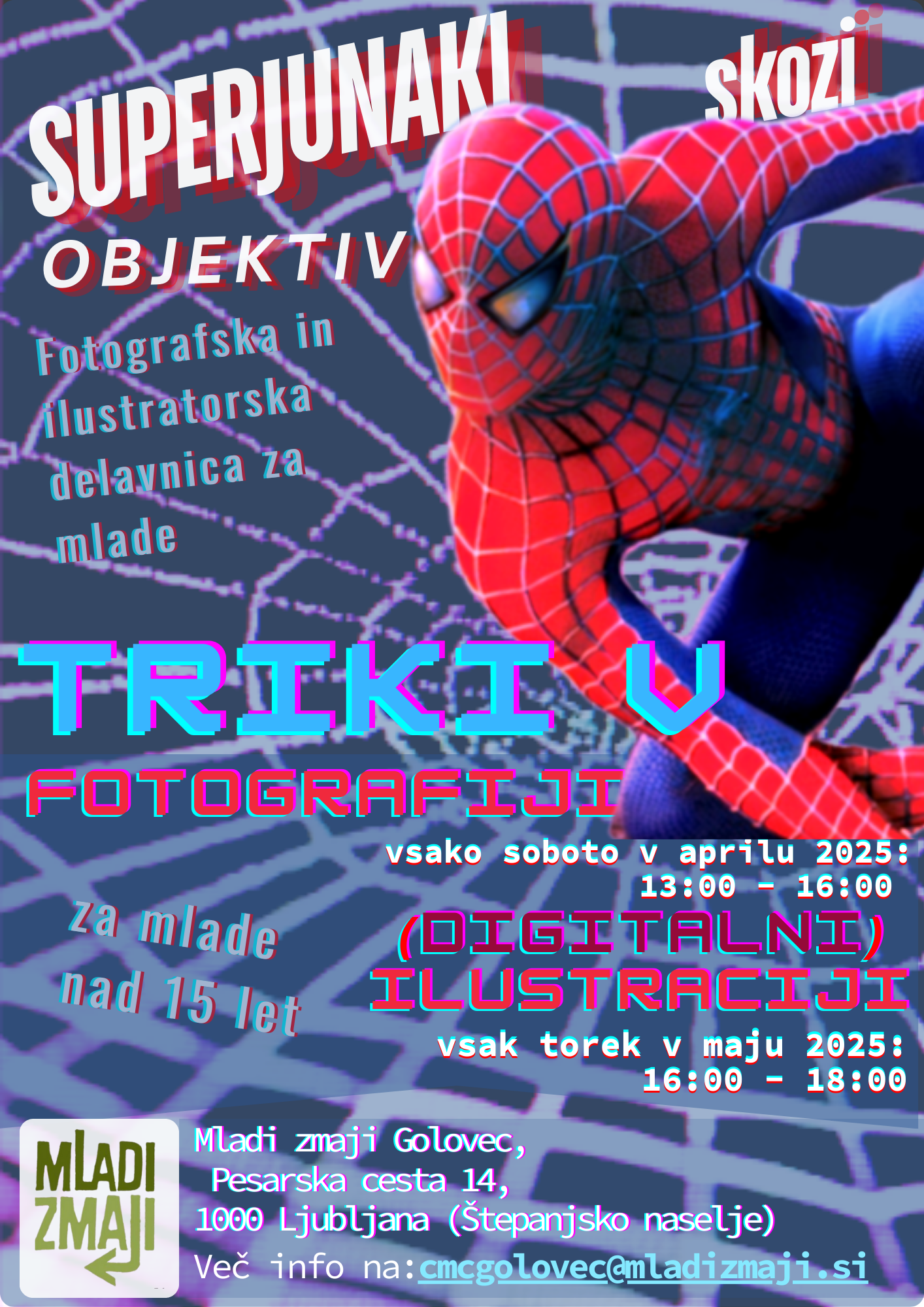 Serija fotografskih delavnic Superjunaki skozi objektiv bo potekala štiri aprilske sobote v Mladih zmajih Golovec. Mladim fotografom, bo ponudila orodja, ustvarjalen prostor in spodbudo, da skozi fotografijo in ilustracijo poustvarijo superjunake, ki jim navdihujejo in jih prenesti v svojo lastno resničnost.