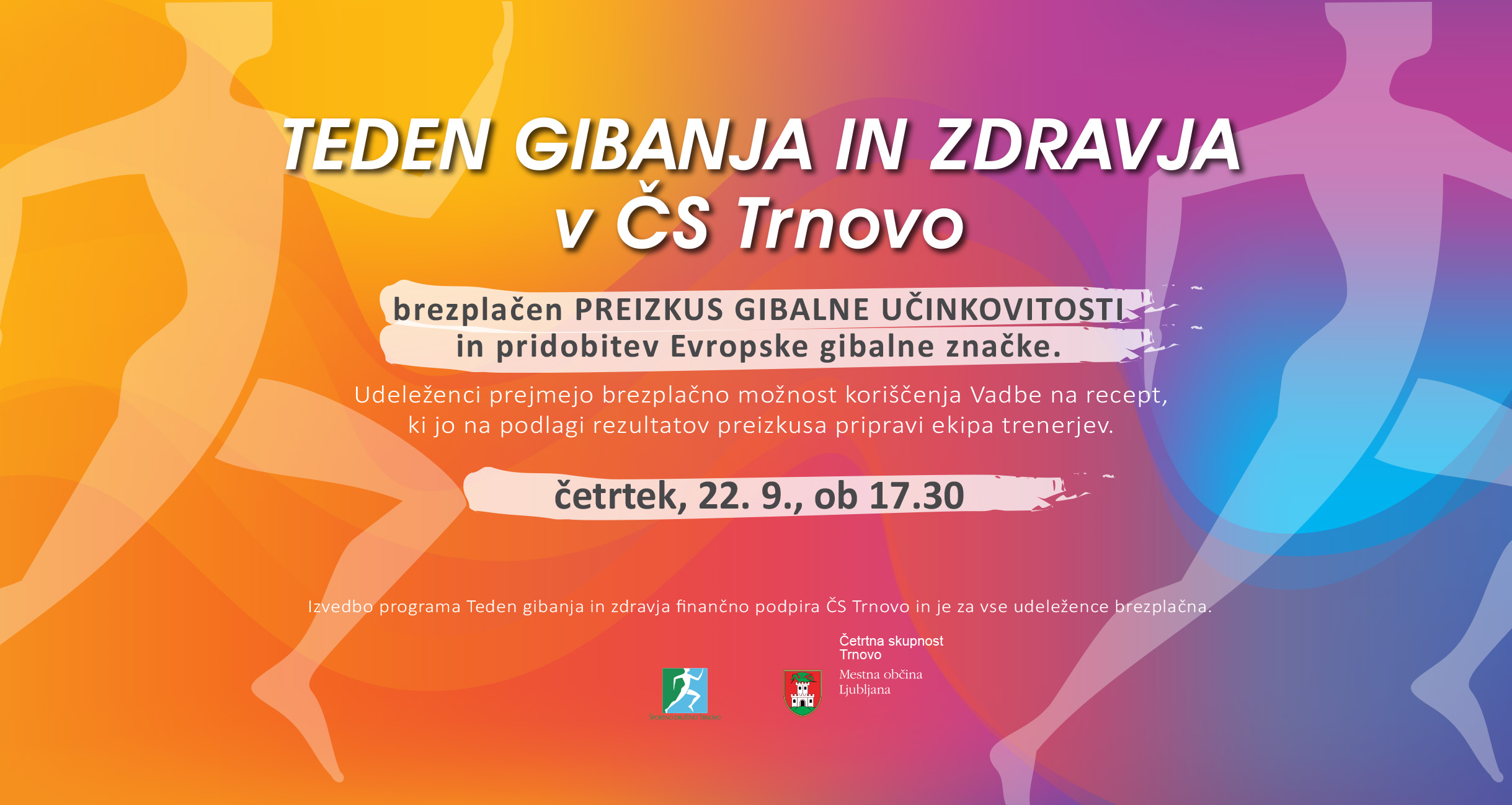 Četrtna skupnost Trnovo v okviru tedna gibanja in zdravja prebivalce vabi na brezplačen preizkus gibalne učinkovitosti in pridobitev evropske gibalne značke.