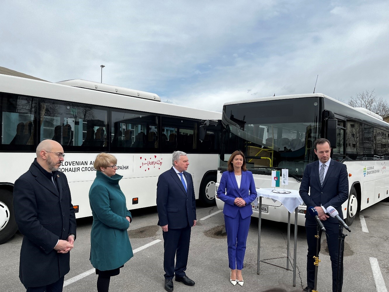 Namestnik direktorja JP LPP Rok Vihar in ministrica za zunanje zadeve Tanja Fajon sta veleposlaniku Ukrajine v Sloveniji Andriju Taranu predala dva avtobusa, ki ju v okviru solidarnostne kampanje Evropske unije doniramo Ukrajini.