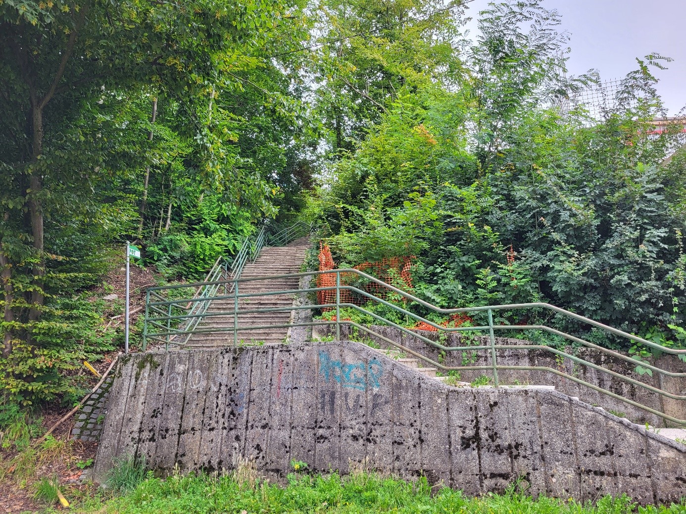 Klančino bomo uredili kot obvozno serpentino okoli z drevesi poraščenega območja ob stopnišču, kot novo povezavo trase PST. Ob tem bomo tudi celovito prenovili obstoječe stopnišče.