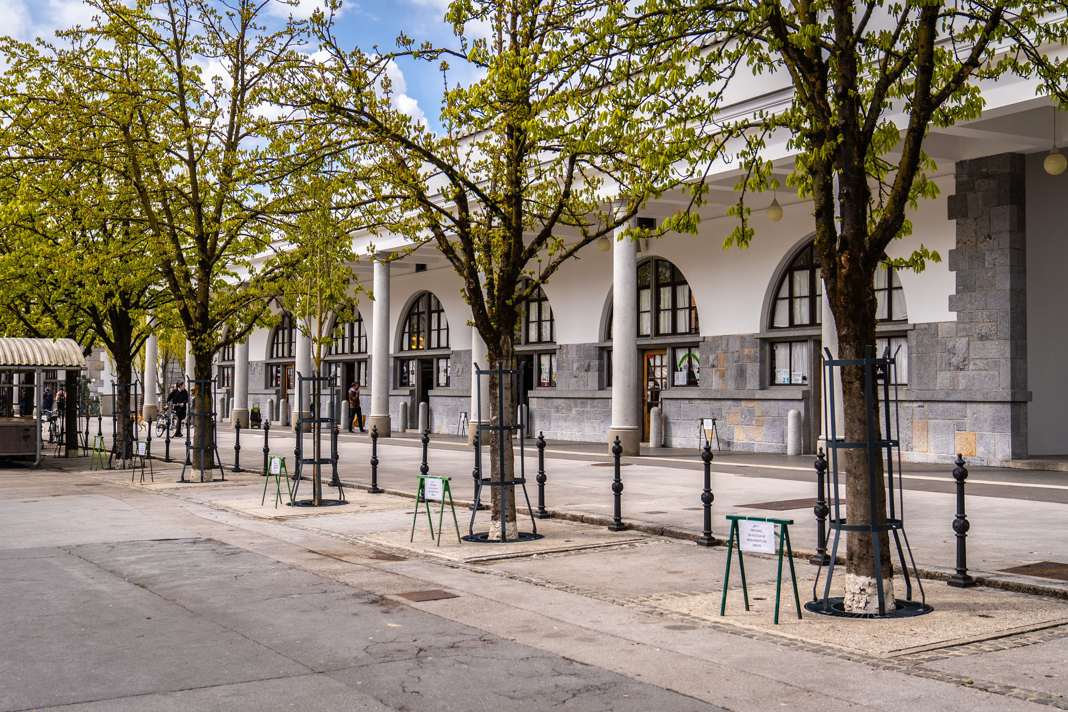 Drevesa na Plečnikovi tržnici so izjemnega pomena, zato smo na tamkajšnji drevored namestili še dodatno zaščito, ki drevesa varuje pred poškodbami.