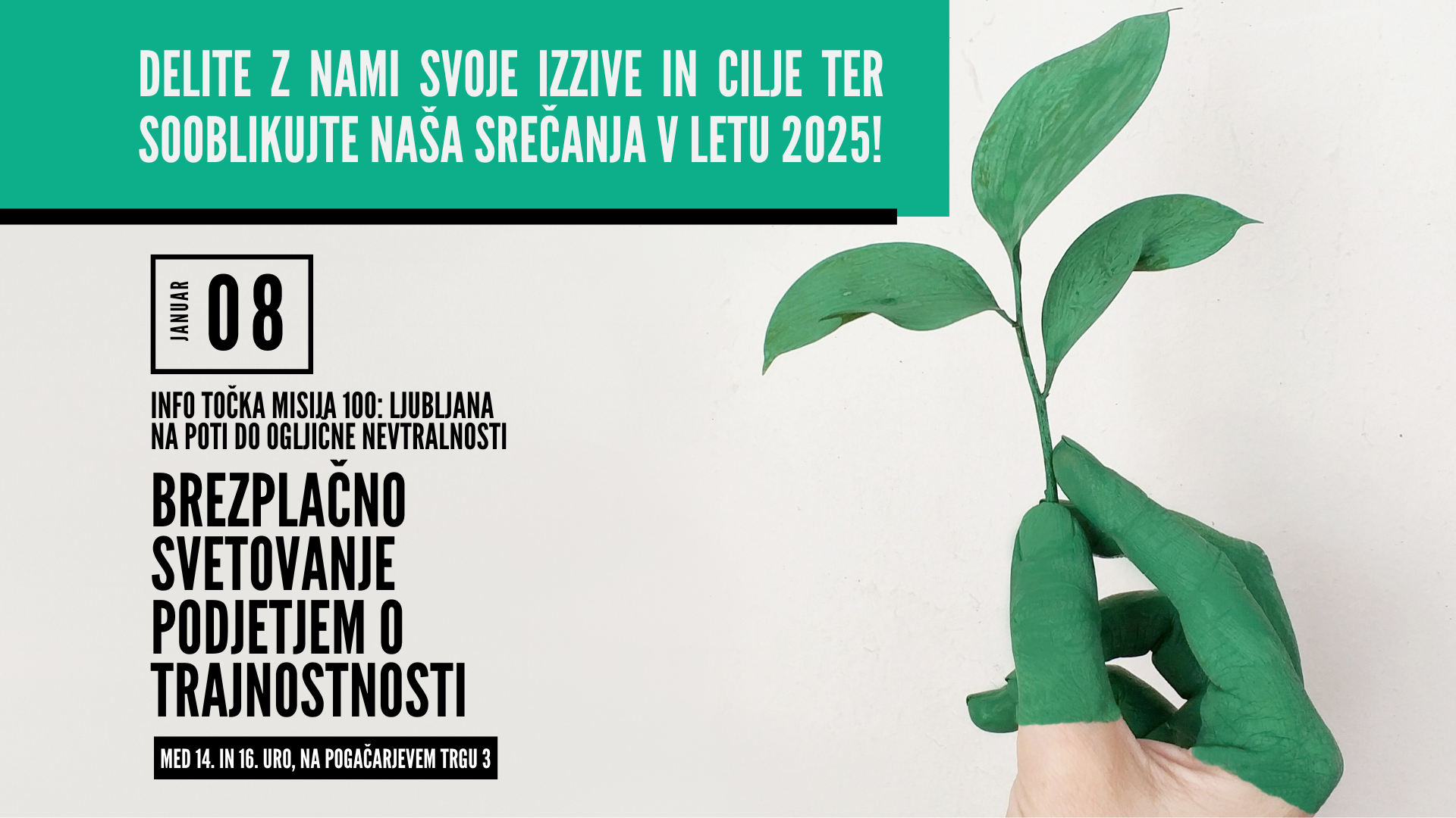 - Pridružite se nam na informacijski točki v sredo, 8. januarja 2024 ob 14. uri, na Pogačarjevem trgu 3 v Ljubljani, in delite svoje cilje ter izzive z nami v živo.