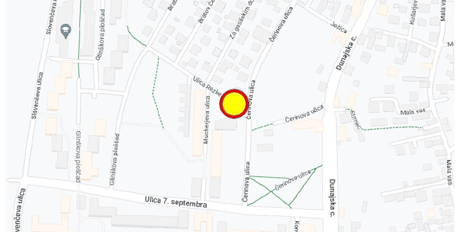 Zaradi izvedbe priključnega vročevoda bo od 5. do predvidoma 7. aprila 2024 za ves promet zaprta Čerinova ulica na odseku med Ulico Rezke Klopčič in Ulico 7. septembra ter ulica Rezke Klopčič na delu med Mucherjevo in Čerinovo ulico.