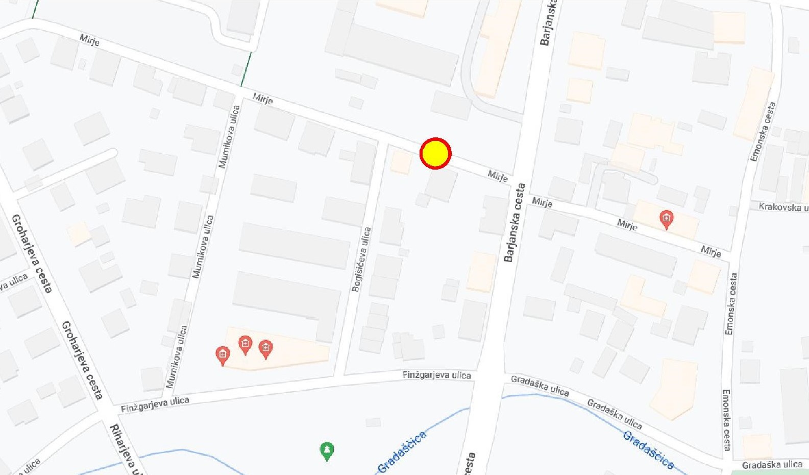 Zaradi izvedbe kanalizacijskega priključka bo od petka, 24. maja, do predvidoma sobote, 25.maja 2024, za ves promet zaprta cesta Mirje med Barjansko cesto in Bogišičevo ulico.