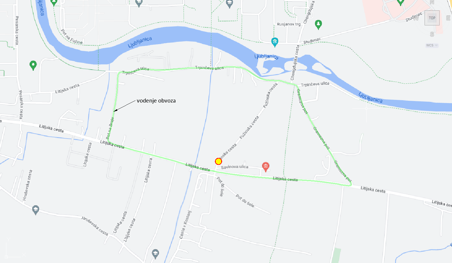 Obvoz bo voden po Litijski cesti, Poti na Breje, Trpinčevi ulici in Gramozni poti.