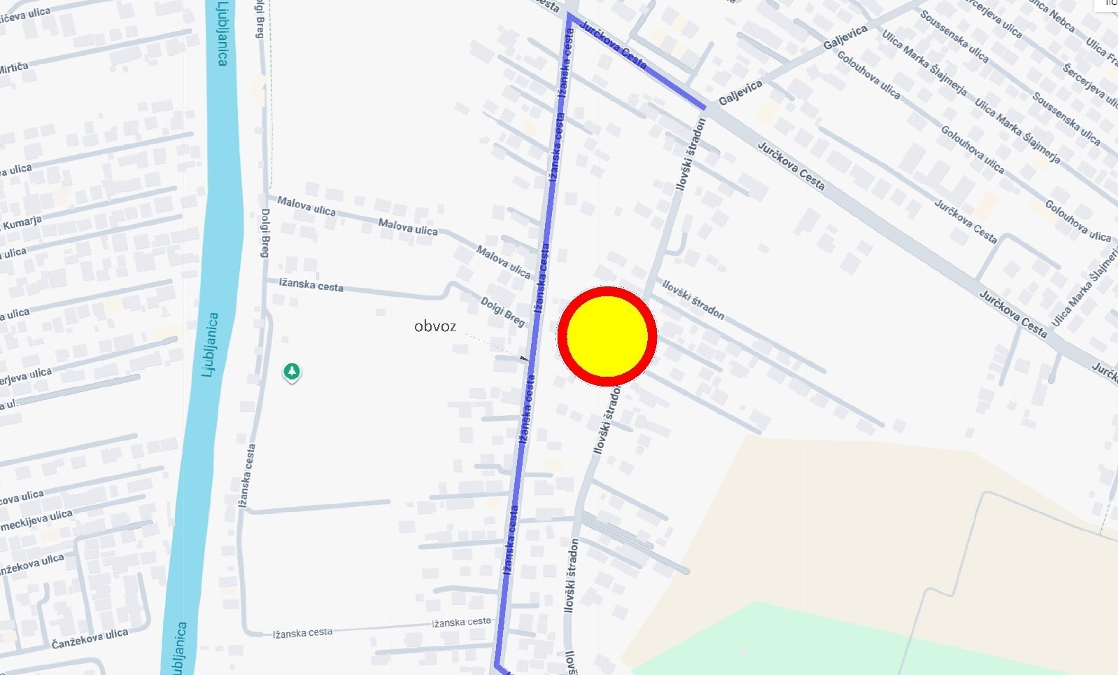 Obvoz bo potekal po Jurčkovi in Ižanski cesti ter Uršičevem štradonu.
