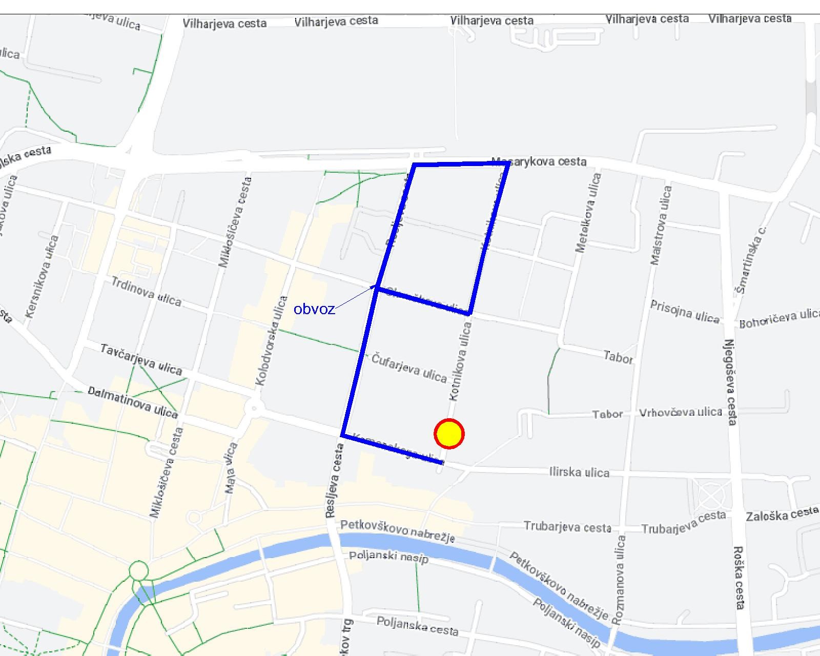 Zaradi obnove vročevoda bo od 16. do predvidoma 22. oktobra 2023 za ves promet zaprta Kotnikova ulica v križišču s Komenskega ulico.
