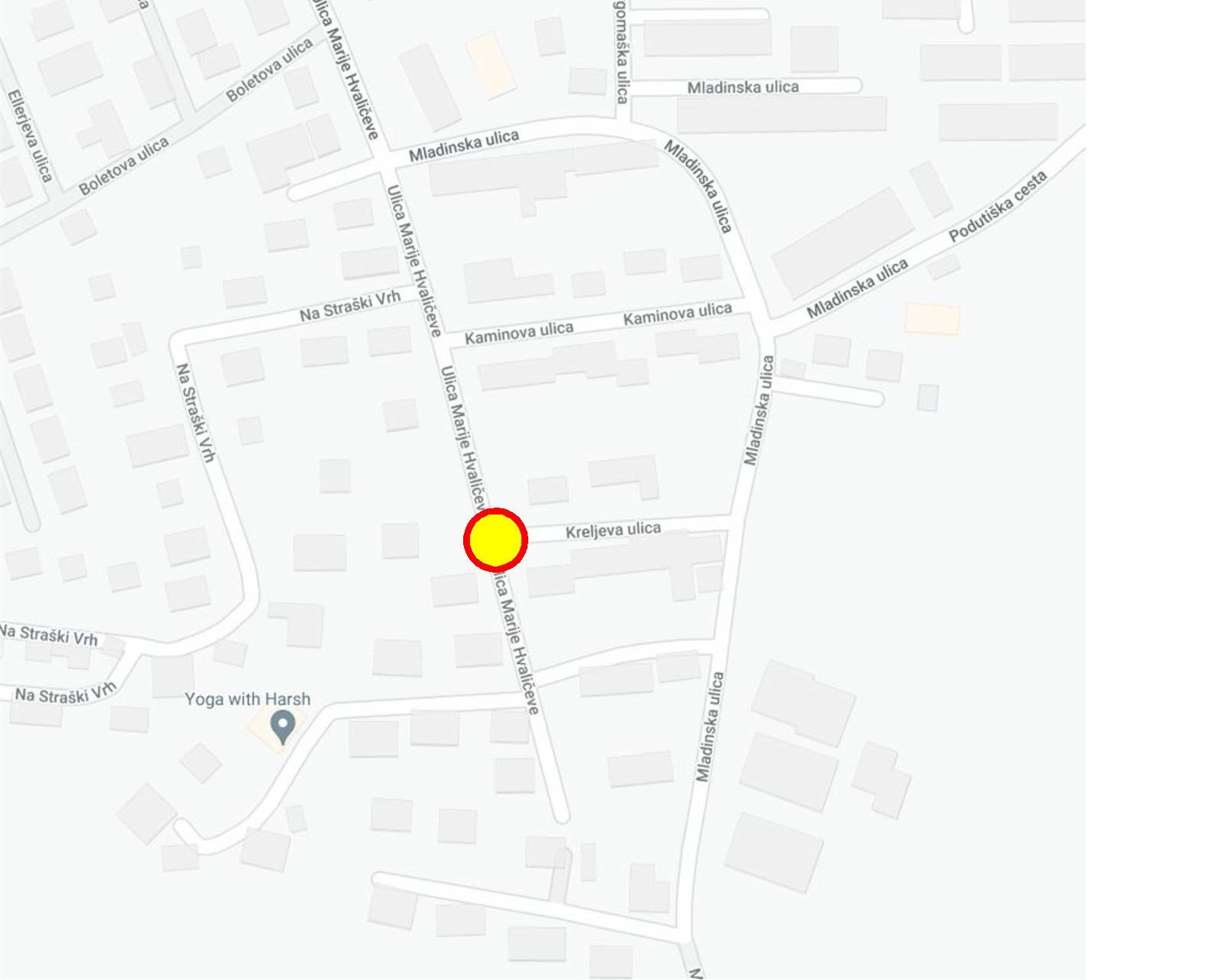 Zapora križišča Ulice Marije Hvaličeve in Kreljeve ulice