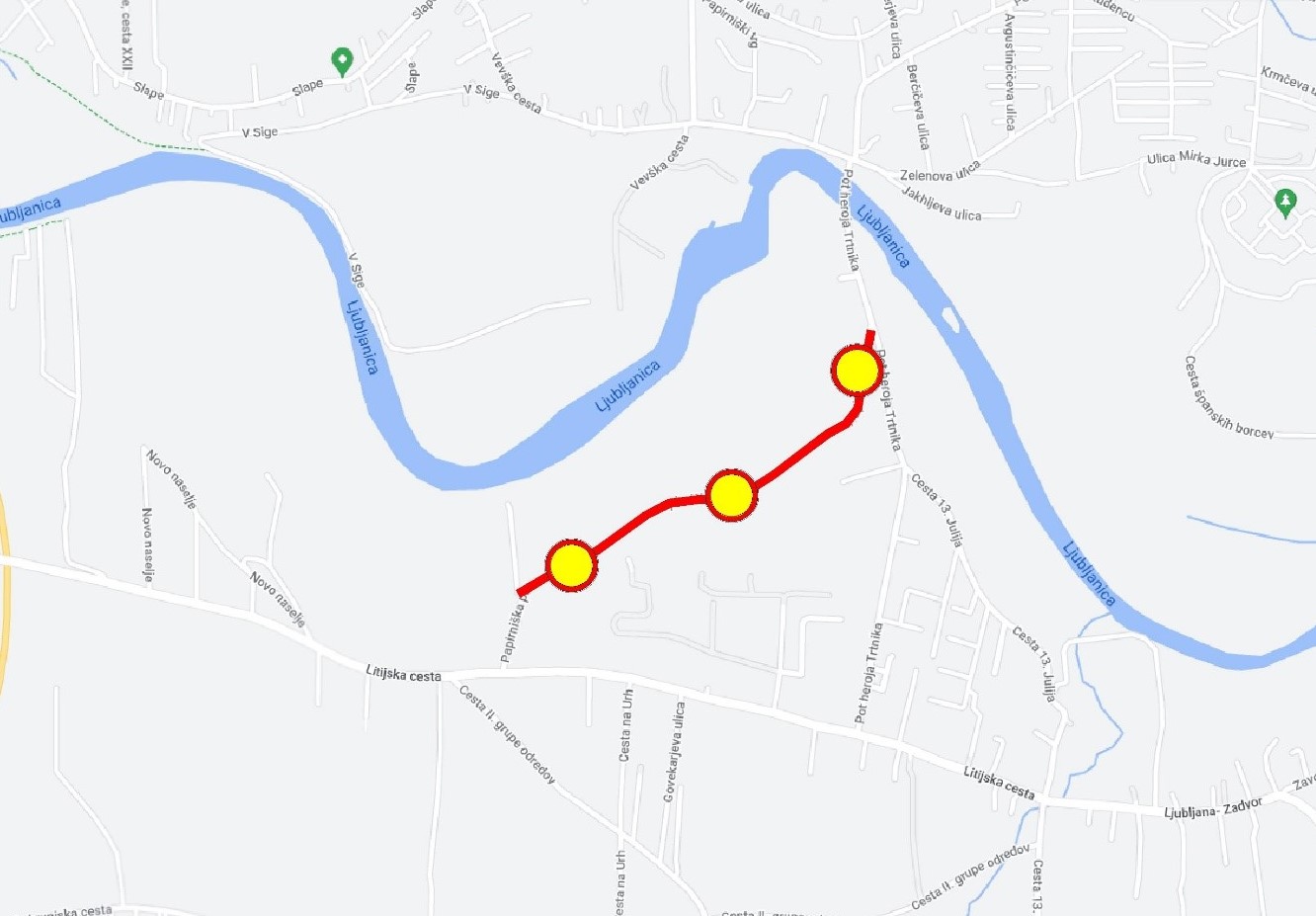 Zaradi gradnje elektro-kabelske kanalizacije bodo od 5. do predvidoma 13. aprila 2024 na Papirniški poti, med Potjo heroja Trtnika in Litijsko cesto, postavljene premične popolne zapore.
