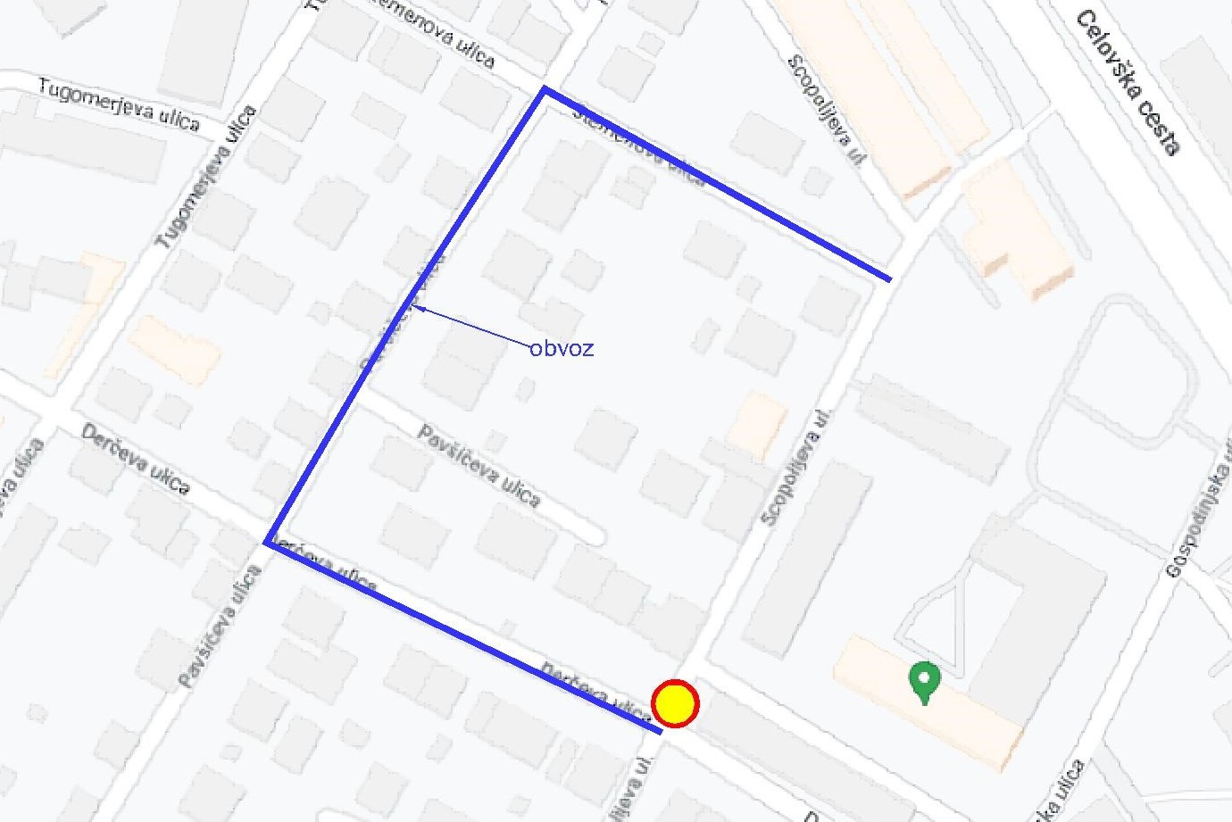 Obvoz bo po Sternenovi in Pavšičevi ulici.