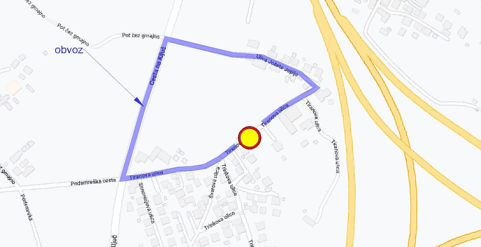 Zaradi izvedbe plinskega priključka bo v sredo in predvidoma v četrtek, 20. in 21. marca 2024, za ves promet zaprta Tiranova ulica na odseku med Trinkovo ulico in Ulico Jožeta Japlja.