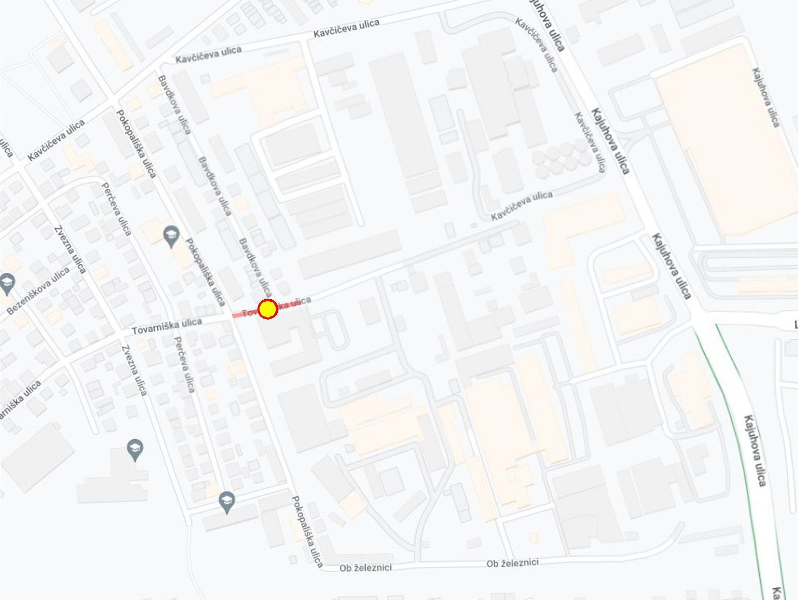 Zaradi obnove vročevoda bo od 11. do predvidoma 19. oktobra 2023 za ves promet zaprta Tovarniška ulica od križišča s Pokopališko ulico proti Bavdkovi ulici